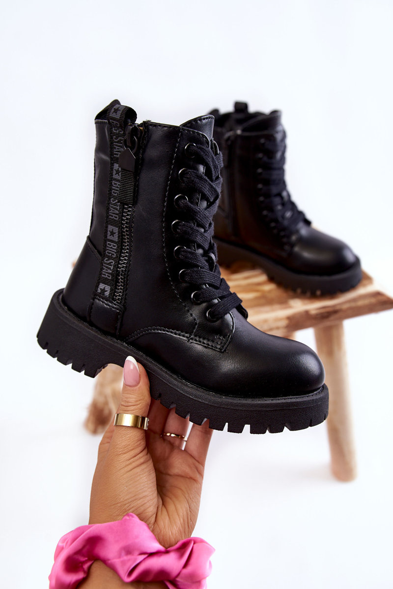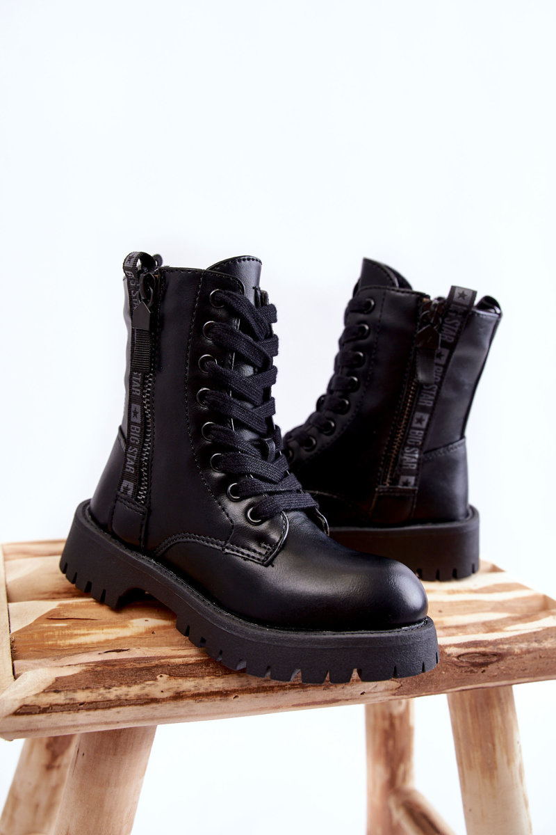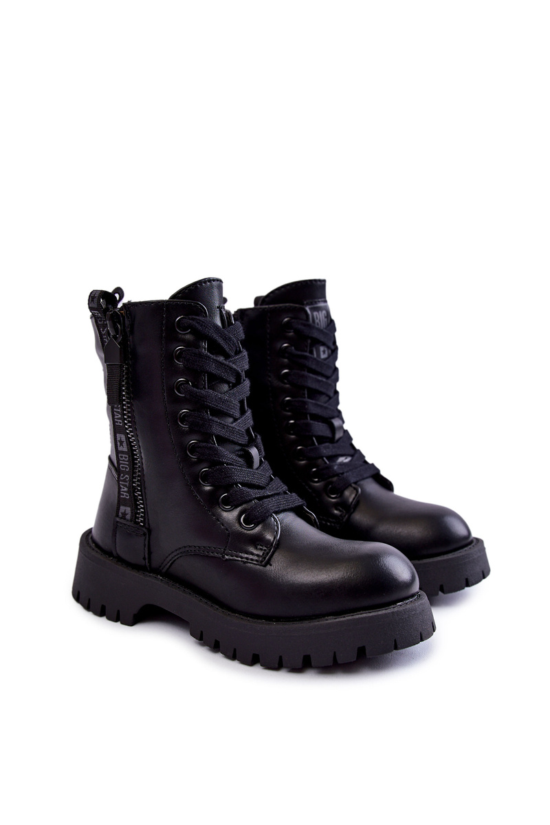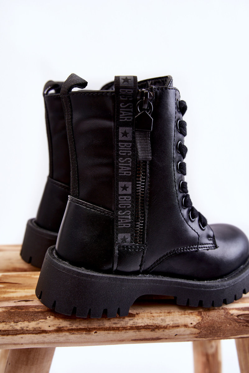 Módne, detské topánky od značky Big Star boli vyrobené z vysoko kvalitnej ekologickej kože. Majú klasické šnurovanie a posúvač. Päta v týchto topánkach je stuhnutá. Stred bol izolovaný fleece. Čižmy boli umiestnené na plochú pätu a plošinu pre behúň. Okrem toho je zvonku dekoratívny zámok. Pri výbere veľkosti nasmerujte tabuľku veľkosti. -22,5/35-23 cm
