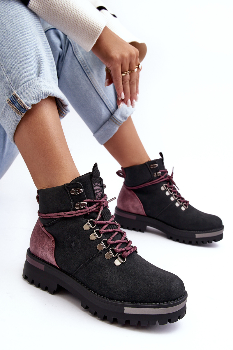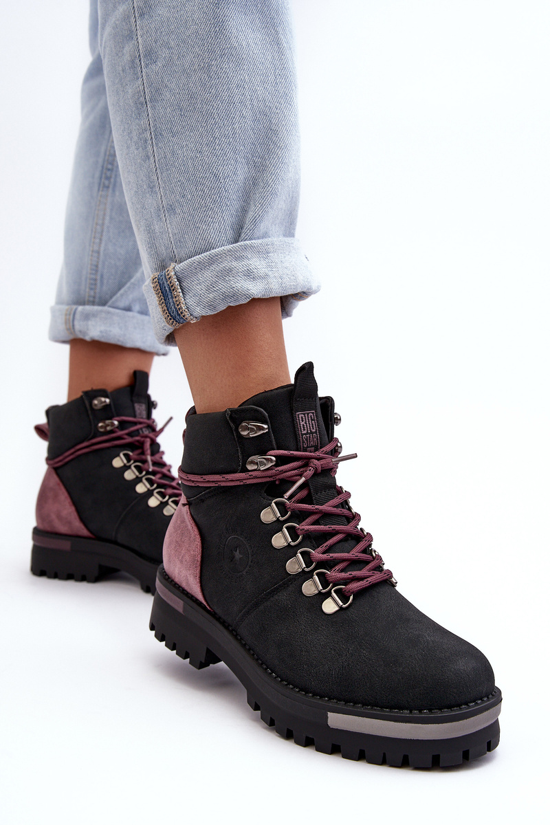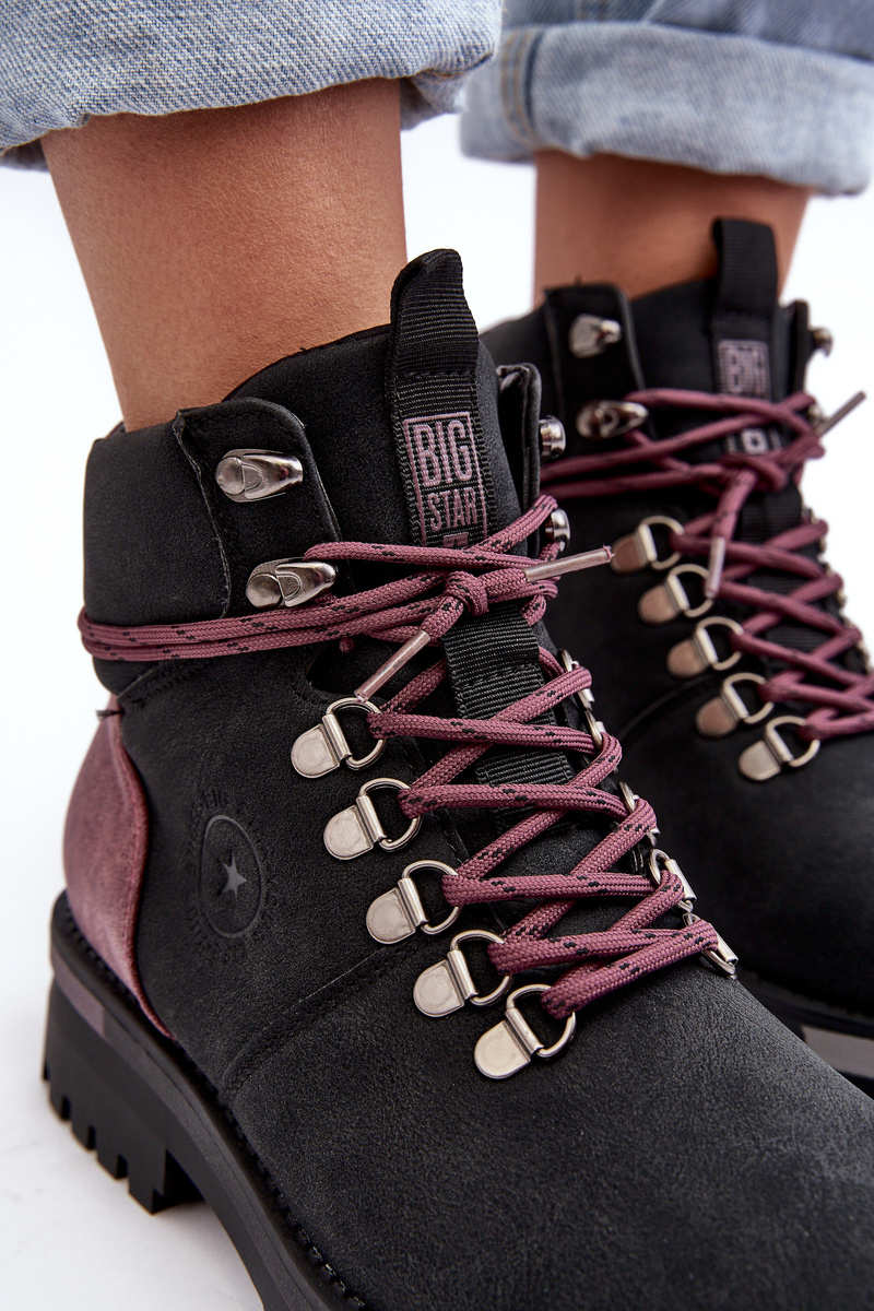 Big Star Trappers vyrobený z ekologickej kože. Masívna podrážka a plochá päta robia topánky stabilné pri používaní na nerovných povrchoch. Model s klasickým predným šnurovaním. Päta je stuhnutá. Nie izolované. Nezabudnite skontrolovať celú kolekciu tejto značky! Pri výbere veľkosti navrhnite tabuľku veľkosti. /p>