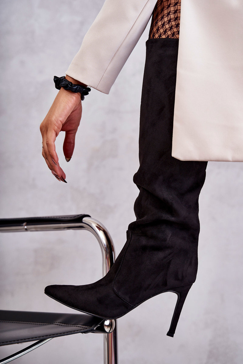Krásne, klasické dámske topánky vyrobené z príjemných ekologických semišov. Majú posúvač pozdĺž celej dĺžky, aby uľahčil inštaláciu obuvi. Podpätky zabudované vo forme špendlíka s vysokým obsahom špendlíka dobre preštuhajú vaše nohy. Majú otepľovanie vo forme prikrývky na obuv. Päta v týchto topánkach je stuhnutá. Tento model by mal byť vo vašom šatníku! Pri výbere veľkosti navrhnite tabuľku veľkosti.