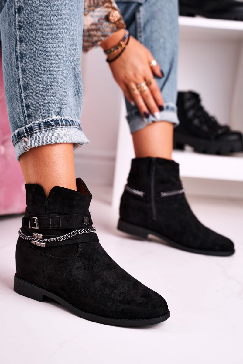 Model topánok, ktoré sa zmestia každú štylizáciu vďaka svojmu klasickému štýlu. Vrchol bol vyrobený z ekologického semišu. Topánky majú posúvač, ktorý uľahčuje nasadenie, a dekoratívnu reťaz. Ľahký a pohodlný dizajn so skrytým klinom zdvihne vašu postavu. Pri výbere veľkosti navrhnite tabuľku veľkosti.