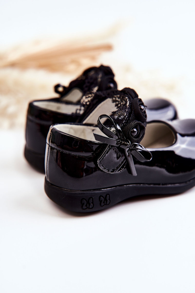 Krásne detské baleríny sú vyrobené z lakovanej ekologickej kože. Majú klasický suchý suchý zips, ktorý je nabíjaný na obuv. Čipky ruže a ekologický kožený luk dodávajú týmto balerám kúzlo. Mäkká vložka vyrobená z prírodnej kože je profilovaná. Sú skvelé počas rôznych druhov osláv s šaty alebo sukňou. Ploché topánky. Podrážka vyrobená z plastu. Pri výbere veľkosti navrhnite tabuľku veľkosti.
