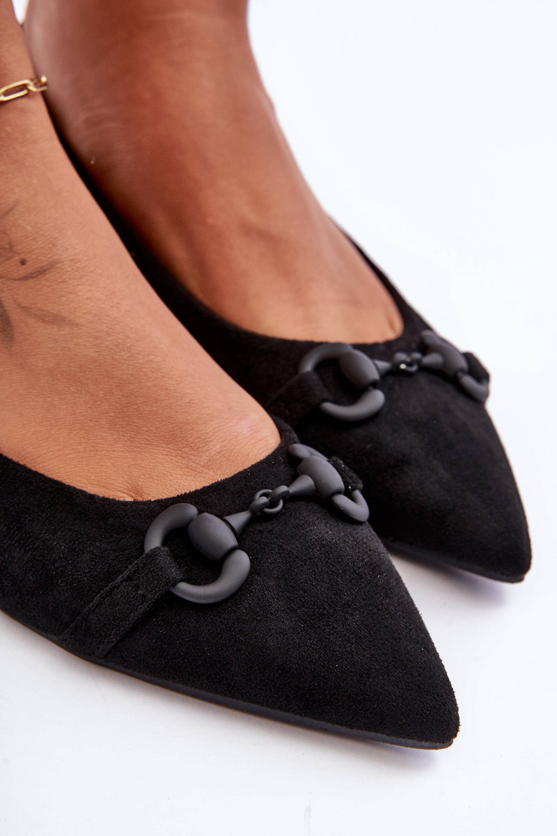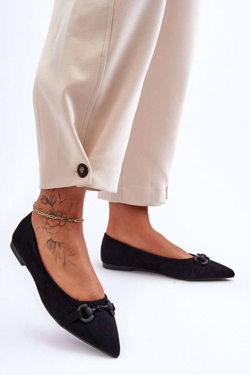 Klasické ženské baleríny boli vyrobené z ekologického semišu. Majú nos v Spitz a matná dekorácia. Mäkká ekologická kožená vložka poskytne pohodlie počas používania. Baleríny sú umiestnené na plochej päte. Skvelý model pre teplejšie dni! Pri výbere veľkosti navrhnite tabuľku veľkosti.