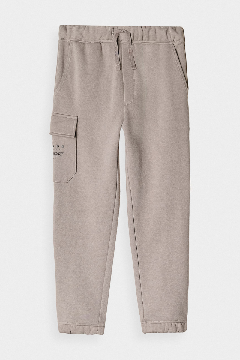 Chlapčenské jogger tepláky sa skvele hodia ako prvok pre každodenné ležérne aj športové štýly. Majú pravidelný strih, ktorý sa pohodlne prispôsobí postave, a zúžené nohavice končiace elastickým manžetom. Pletenina single jersey s jednostranne hladkým povrchom zabezpečuje, že sú elastické a pohodlné na nosenie. Detské tepláky sú vyrobené z 80% bavlny, vďaka čomu sú mäkké, odolné a príjemné na dotyk. Prídavok polyesteru (20%) zabezpečuje, že materiál si udržuje tvar a je odolný voči opotrebovaniu aj po mnoho sezón. Česaný vnútorný materiál zaručuje dodatočné teplo, čo znamená, že nohavice sú ideálnou voľbou na chladnejšie dni. Na bokoch sa nachádzajú 2 otvorené vrecká. Navyše je na vonkajšej strane pravej nohy cargo vrecko. Na nohavici sa nachádza nápis "Choose Your Own Sphere". Elastický pás s vonkajšou reguláciou na šnúrky.