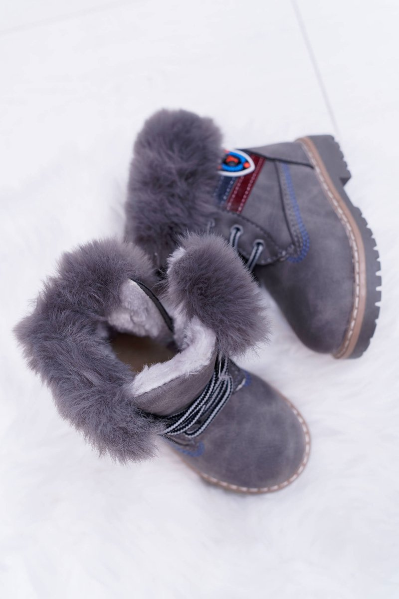 Počas chladných dní sa oplatí postarať sa o pohodlnú obuv pre naše deti. Jedným z našich návrhov sú tieto úžasné topánky s kožušinou okolo členku. Interiér je pokrytý silnou izoláciou kožušiny. Uvedenie uľahčí posuvný posúvač na boku. Nezabudnite sa pozrieť na celú našu ponuku detských topánok. Pri výbere veľkosti nasmerujte tabuľku veľkosti.