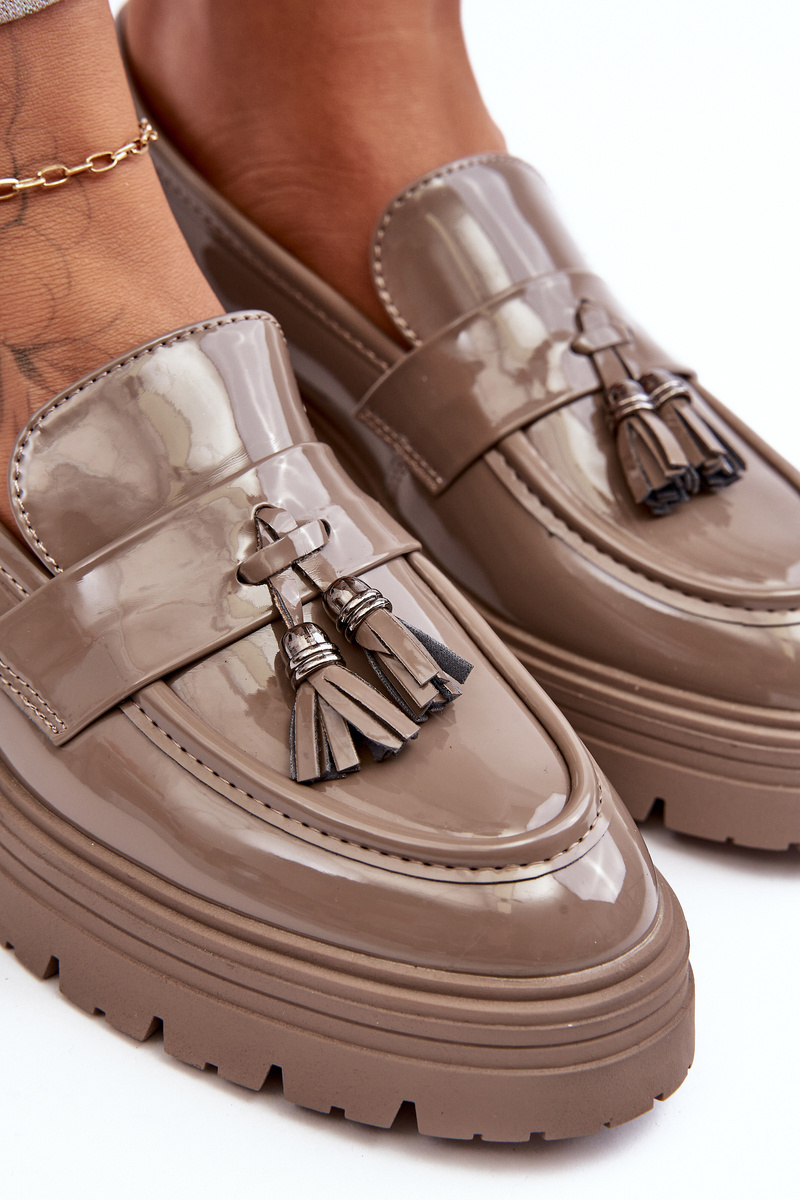 Módne dámske topánky vyrobené z ekologickej kože. Zasmievané v plochej päte a hustej podrážke. Zaoblené prsty na nohách. Predný popruh je zdobený strapcami. Päta je stuhnutá. Mäkká ekologická kožená vložka poskytne pohodlie počas používania. Tento model doplní každú štylizáciu - tak šaty aj džínsy! Pri výbere veľkosti navrhnite tabuľku veľkosti. /p>