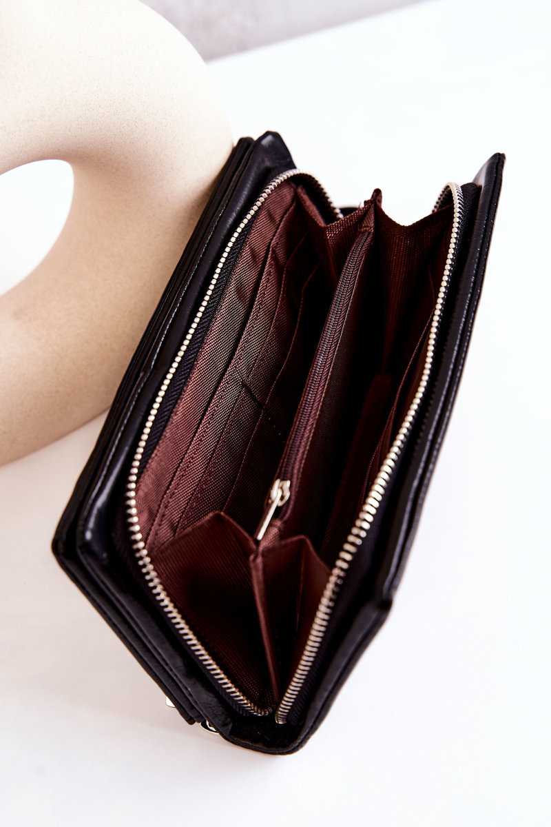 Peňaženka bola vyrobená z ekologickej kože. Má tri vrecká zatvorené posúvačom - malé, stredné a veľké. Okrem toho je s veľkým vreckovým posúvačom k dispozícii farebný pás a na mieste pre vizitky, balz a bankovky. Vyzerá to nádherne ako doplnok. Musíte to mať!