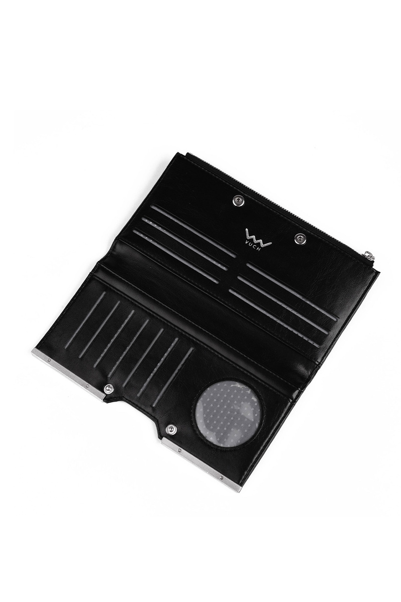 Táto peňaženka poteší mnohých milovníkov jedinečných módnych doplnkov! Elegantná peňaženka bola vyrobená z ekologickej kože. Na prednej strane je znak s dekoratívnym zirkónom. Na zadnej strane je otvorené vrecko, v ktorom bol zobrazovač vytiahnutý s miestom pre fotografiu vo farbe inej ako peňaženka. Časť pripevnená stlačením obsahuje aj priestor pre vizitky alebo preukaz totožnosti a fotografiu. Vrecko pripevnené posúvačom bude umiestniť mince.