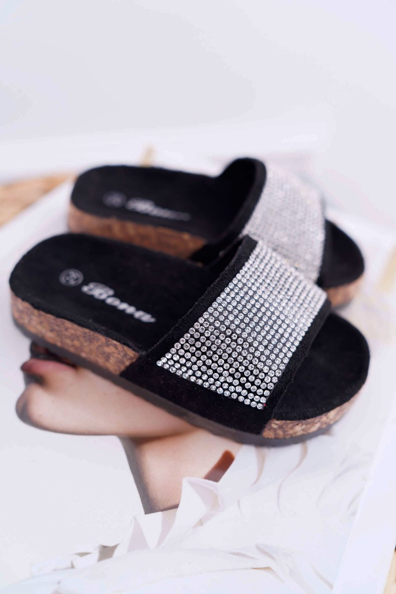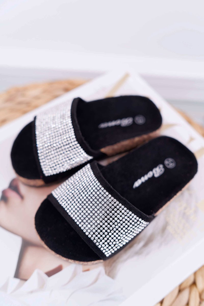 Čierne detské žabky Malena kryštály