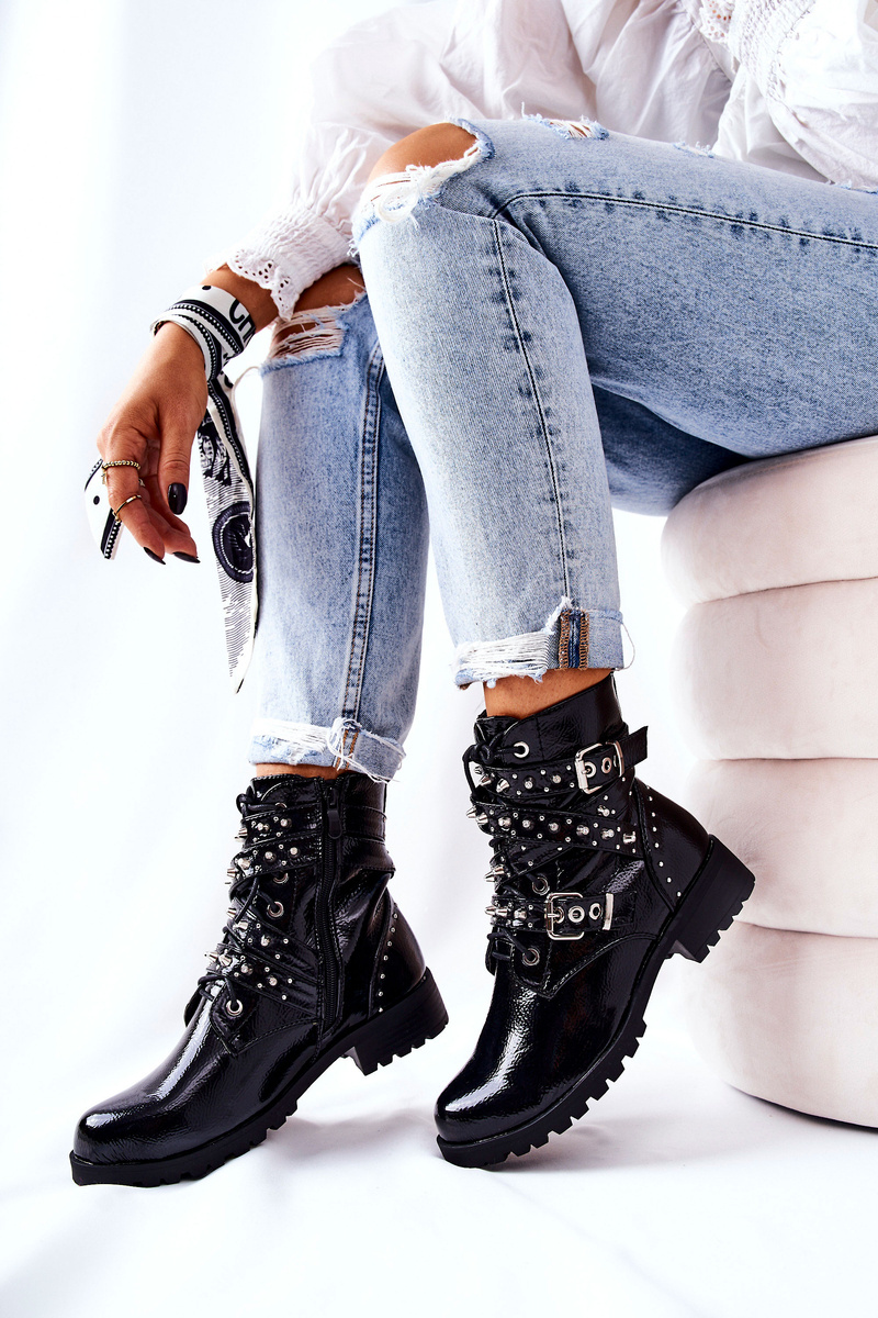 Tento model bol vyrobený z ekologickej kože. Horná časť zdobená pruhmi s prackami a flitrami. Interiér topánky bol izolovaný teplou a príjemnou prikrývkou obuvi. Topánky sú pripevnené zipsom a zviazané. Vo vašom šatníku nemôžu chýbať! Kúpte si ešte dnes! Pri výbere veľkosti navrhnite tabuľku veľkosti.