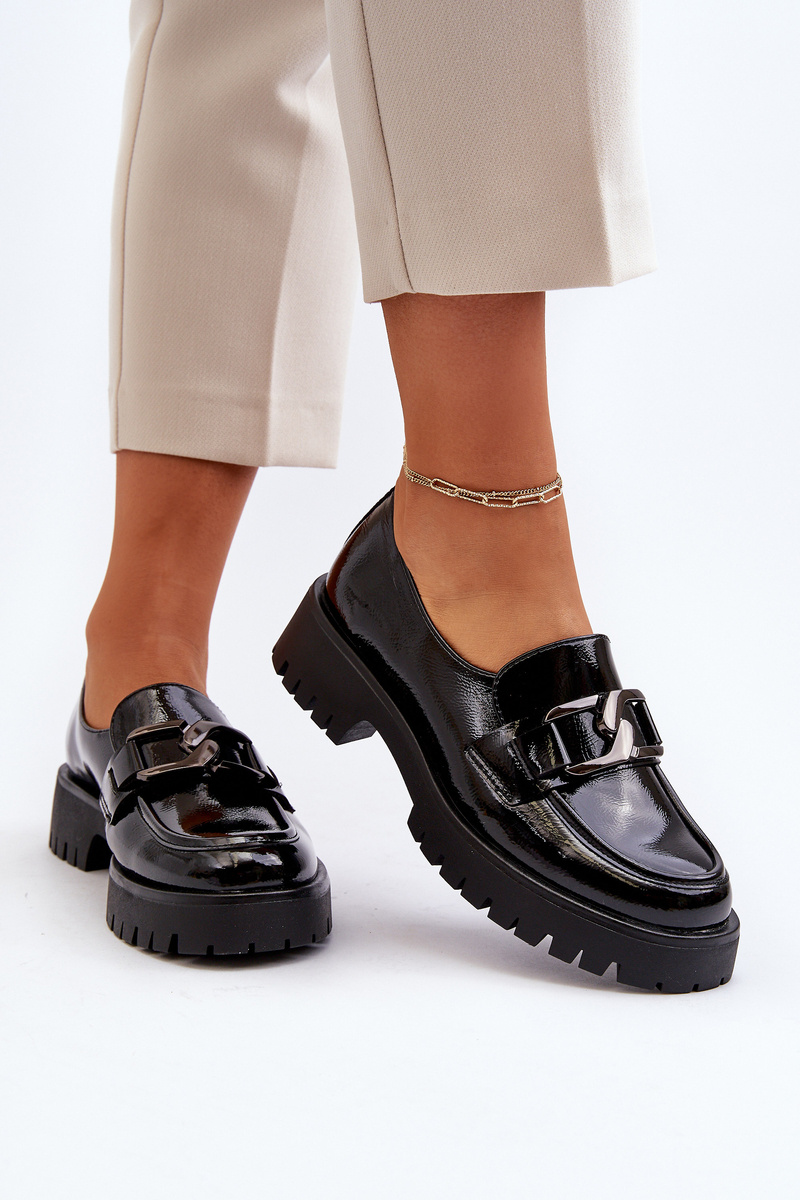 Čierne lakované dámske mokasíny Santtes