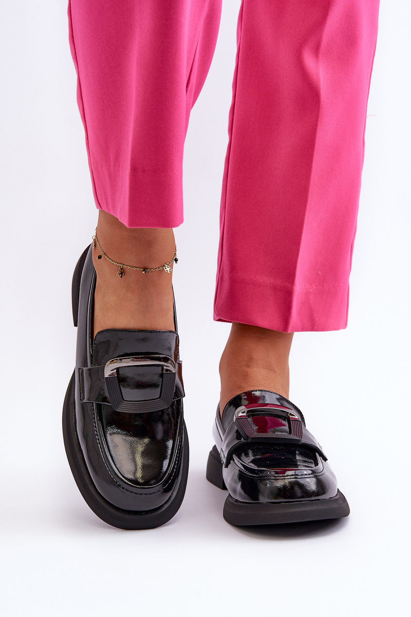 Čierne lakované kožené mokasíny dámske Fidodia