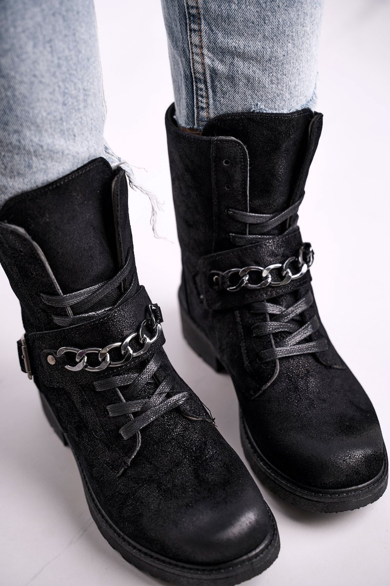 Pozrite sa na tieto krásne topánky! Pracovníci sú vyrobení z ekologického semišu, zdobené striebornou reťazou. Vo vnútri je na dotykovej obuvnej prikrývke teplá a príjemná. Pri výbere veľkosti navrhnite tabuľku veľkosti.