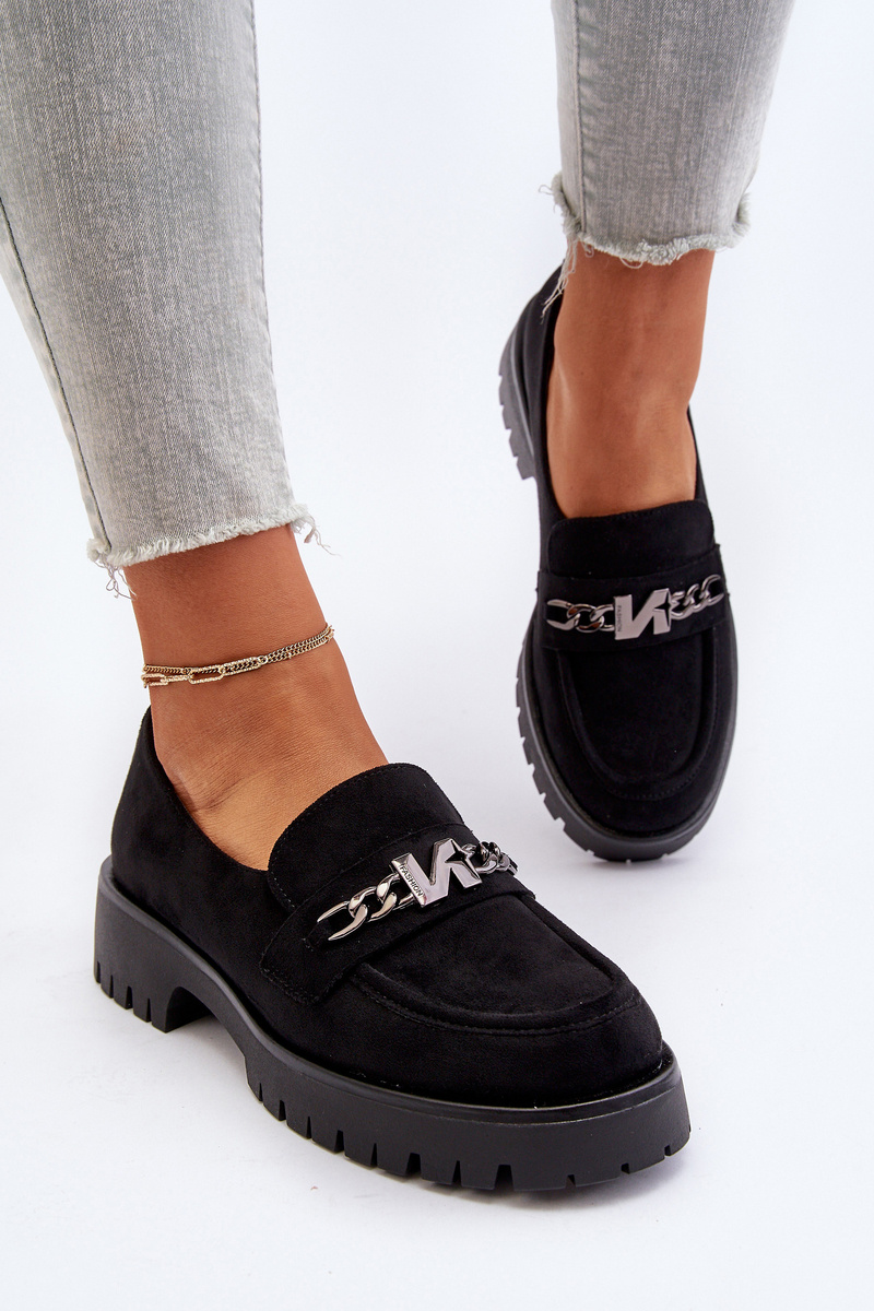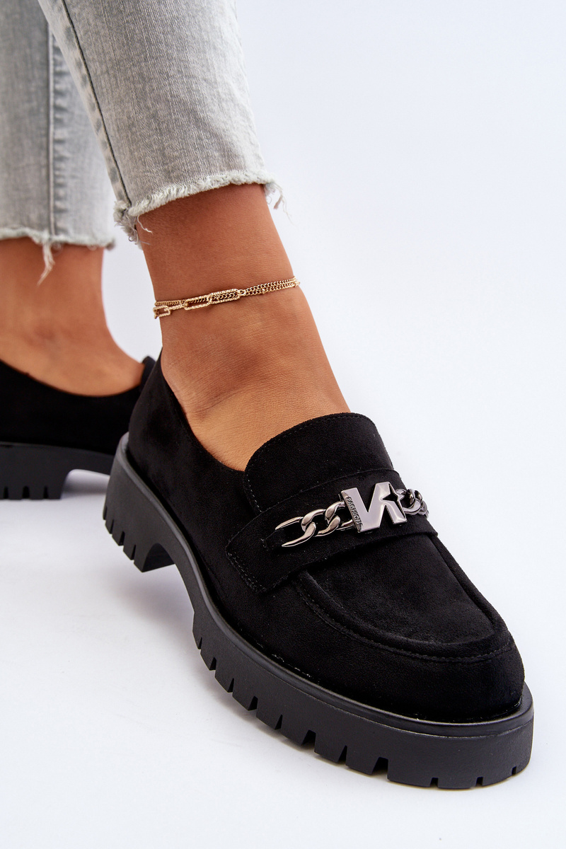 Čierne semišové dámske mokasíny s ozdobou Loraleima