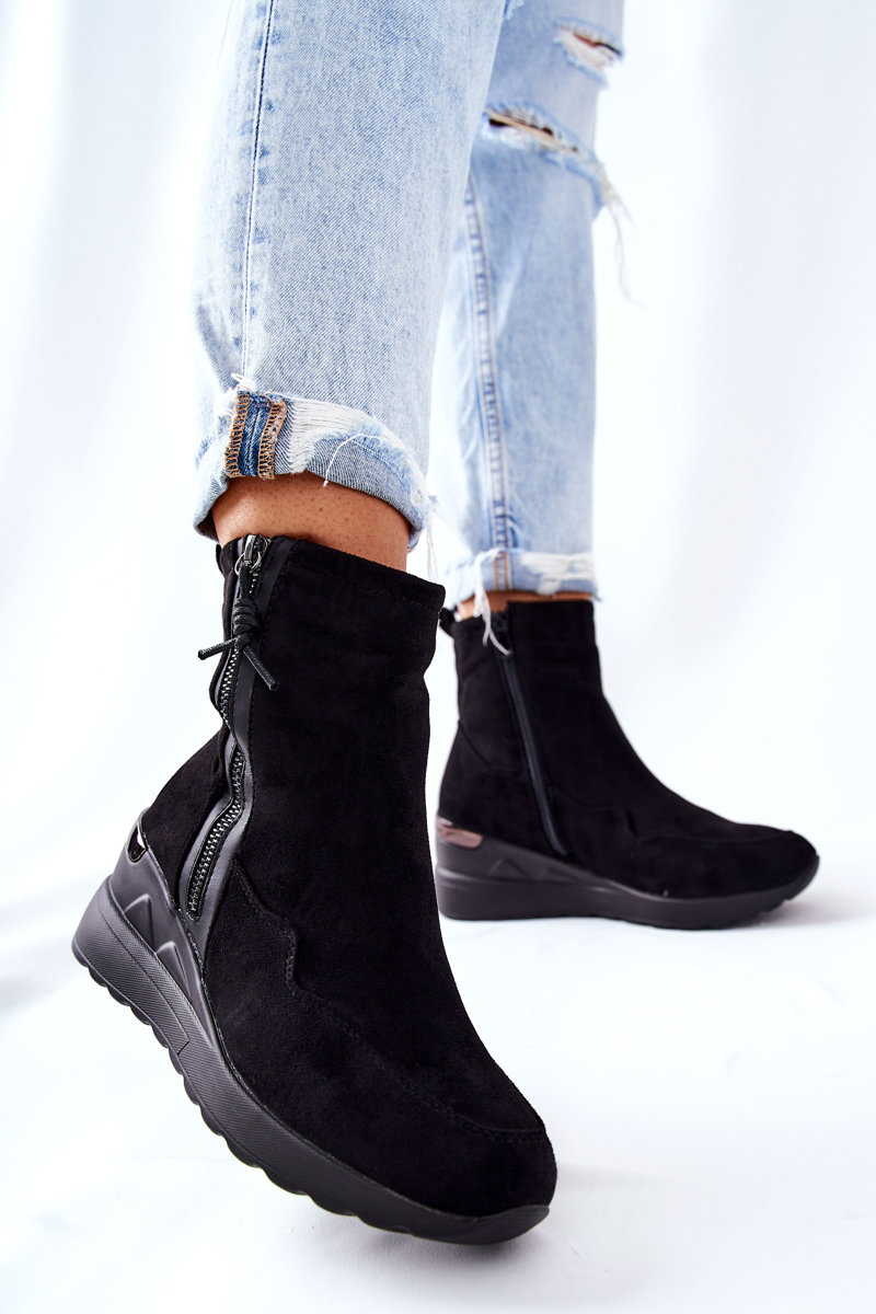 Tieriny na klinoch ukradnú srdcia mnohých obdivovateľov vysokých a pohodlných topánok! Boli vyrobené z ekologického semišu. Na vonkajšej strane je dekoratívny zámok, zatiaľ čo na druhej strane je posúvač, ktorý uľahčuje obuv. Agent je izolovaný s príjemnou čepeľou dotykovej obuvi. Pri výbere veľkosti navrhnite tabuľku veľkosti.