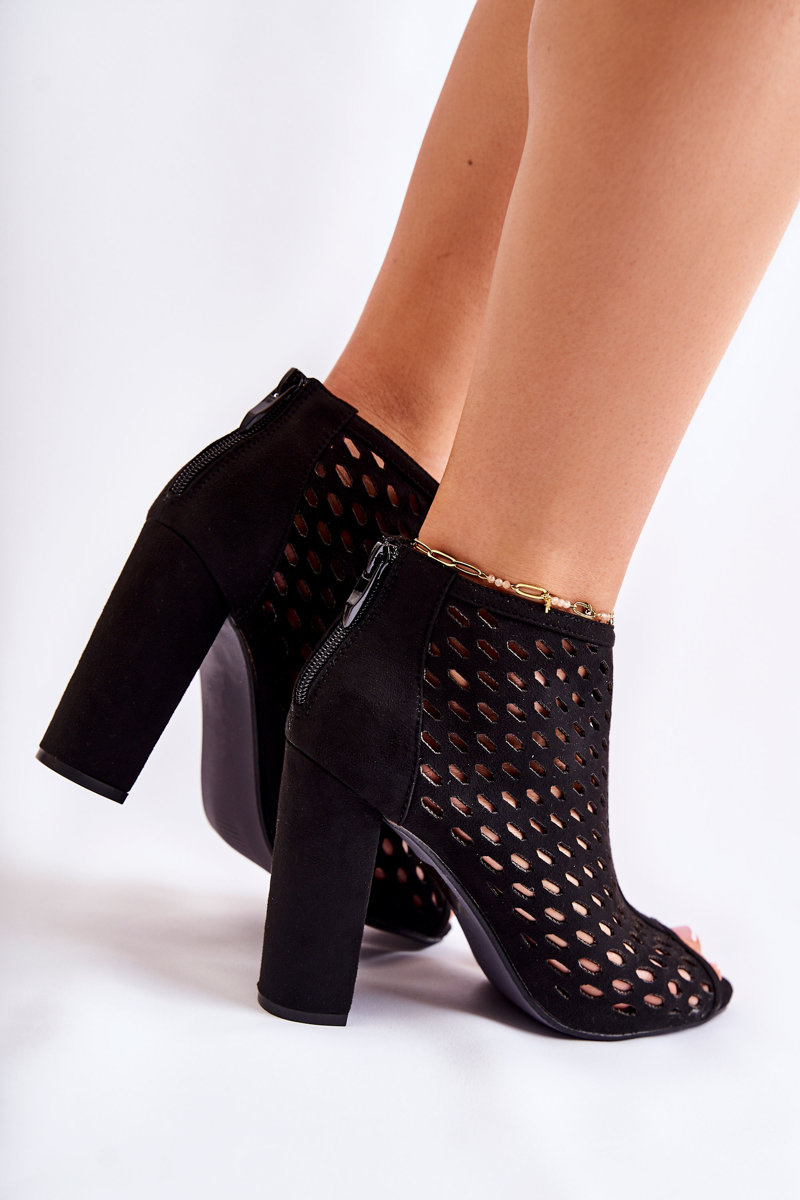 Štýlové ženské topánky boli vyrobené z ekologického semišu. Majú na celom zvršku otvorený vzor. Postavené na stabilnej päte vo forme príspevku. Na stuhnutom upevňovaní je posúvač na uľahčenie inštalácie obuvi. Model s holými prstami. Vložka vyrobená z ekologickej kože zaistí pohodlie počas používania. Model sa dobre hodí v mnohých jarných a letných štylizáciách! Pri výbere veľkosti navrhnite tabuľku veľkosti.