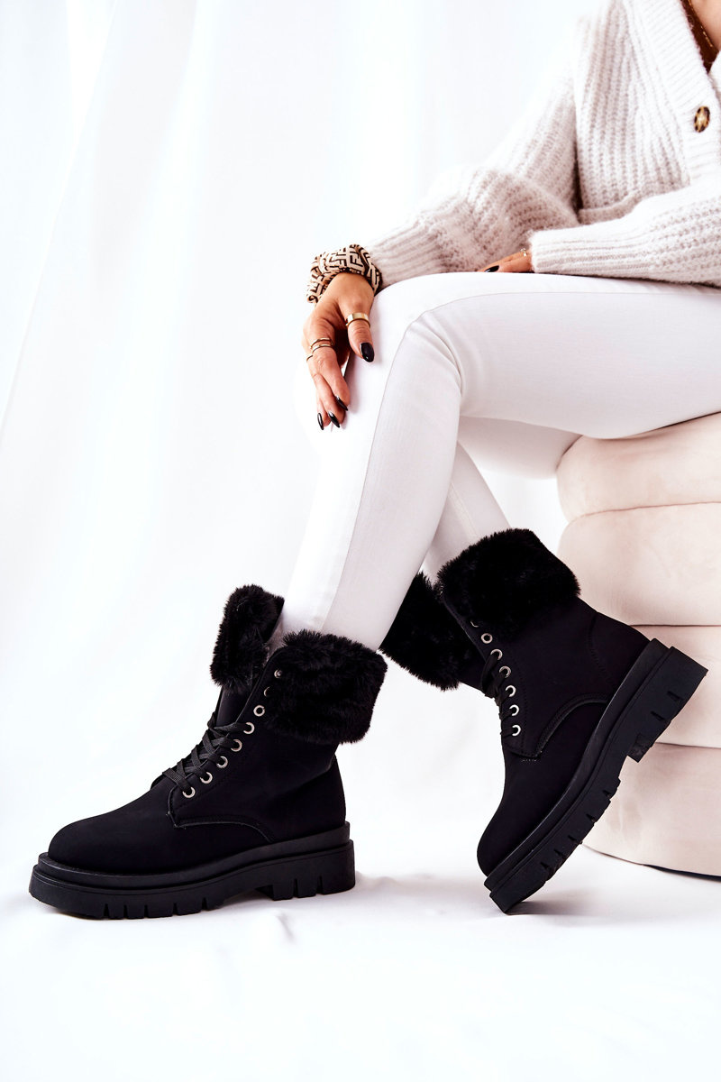 Čierne topánky na izolované kože s kožušinou s kožušinou