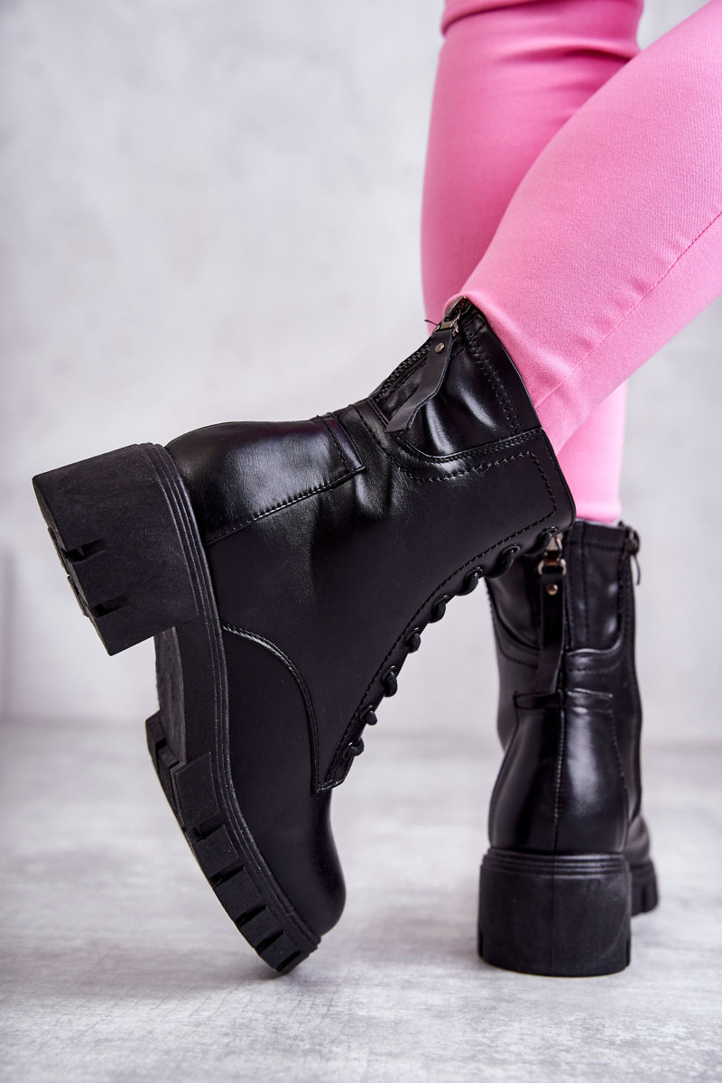 Dámske topánky s vyšším členkovým zvrškom boli vyrobené z ekologického trpezlivého na dotyk. Tento model má puto a posúvač. Postavené na plošine a plochých podpätkoch. Podrážka je vyrobená z gumového plastu. Čižmy majú vnútri vnútri vo forme peknej obuvi. Studivená päta umožní primeranú stabilizáciu chodidla. Pri výbere veľkosti navrhnite tabuľku veľkosti.