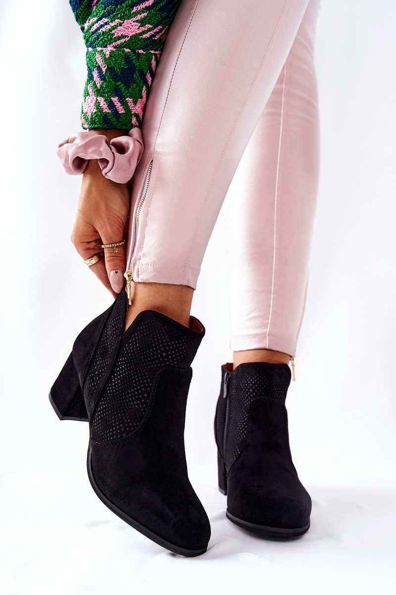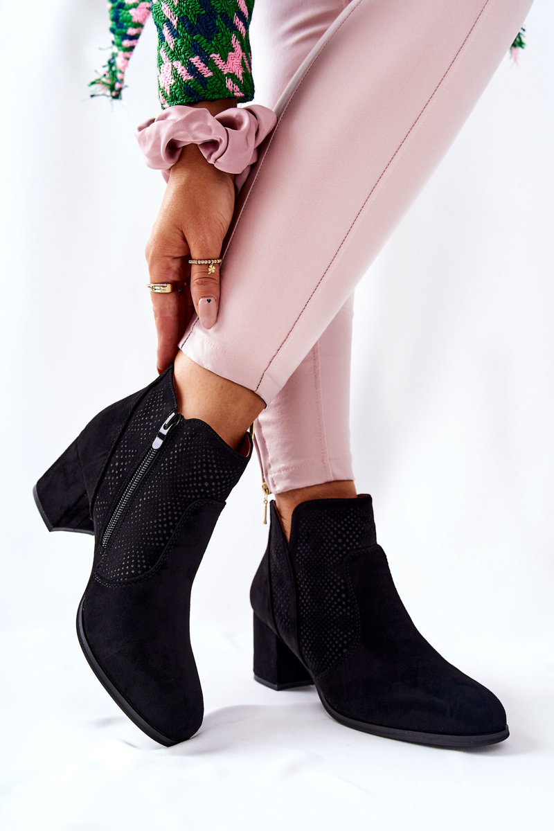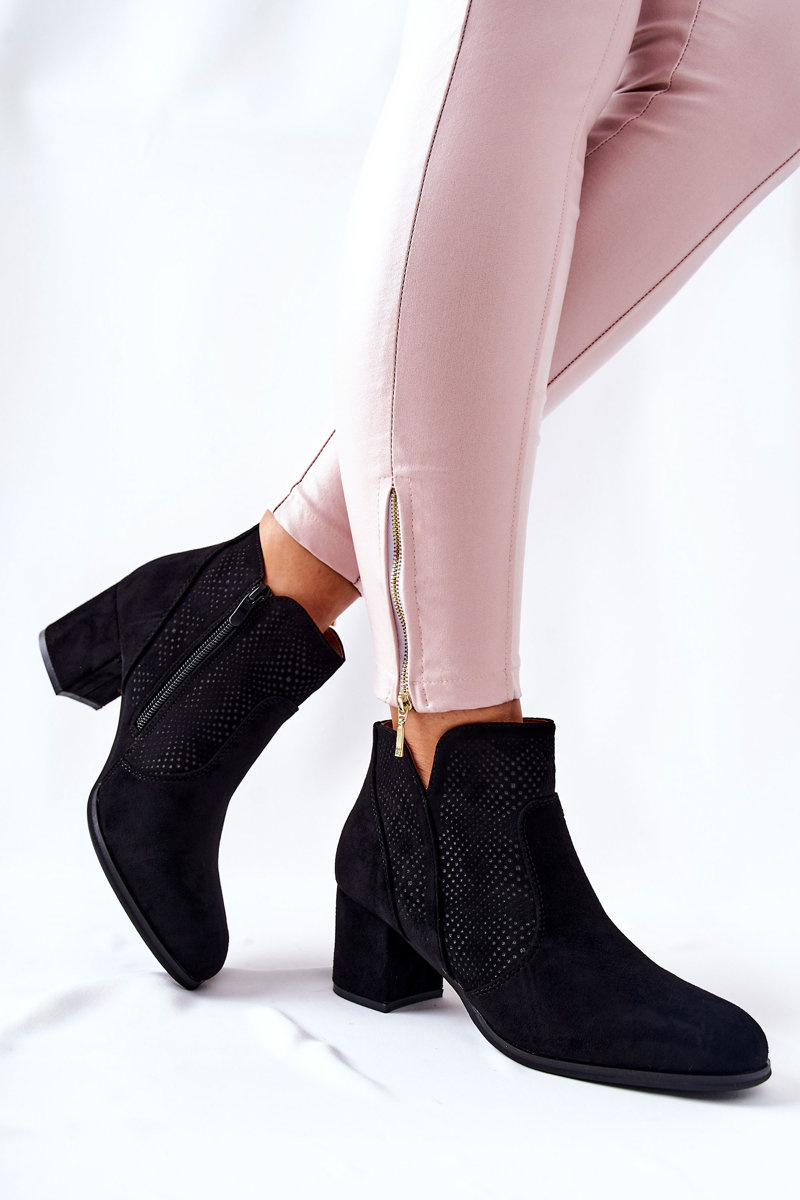 Klasické topánky s hustejšou pätou sa dokonale zhodujú s mnohými štýlmi. Majú mierne perforovaný materiál a šitie. Pripevnený zipsom. Vo vnútri izolovaný jemnou kožušinou, ktorá bude určite fungovať počas chladných jesenných a zimných dní. Nezabudnite skontrolovať naše predajne topánok! Pri výbere veľkosti navrhnite tabuľku veľkosti.
