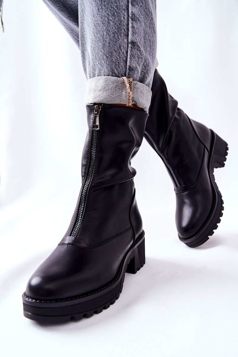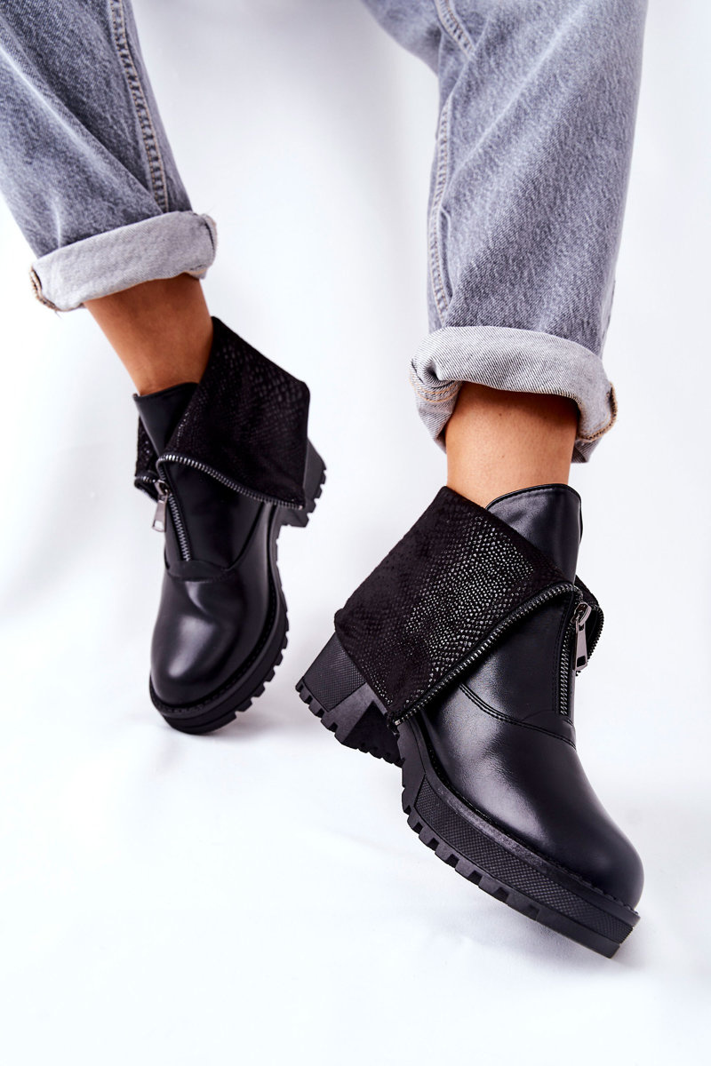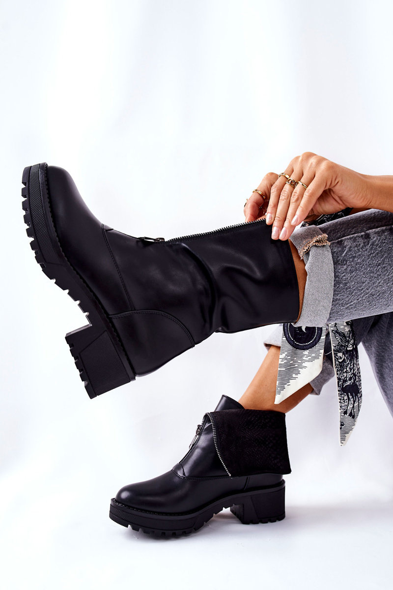 Boots vyrobené z ekologickej kože. Majú posúvač na prednej časti zvršku, vďaka čomu sú pohodlné. Zvuk je zvinutý. Príjemná prikrývka na dotyk obuvi bude užitočná pre chladné jesenné dni. Masívna plochá päta zaisťuje stabilitu a pohodlie. Pri výbere veľkosti navrhnite tabuľku veľkosti.