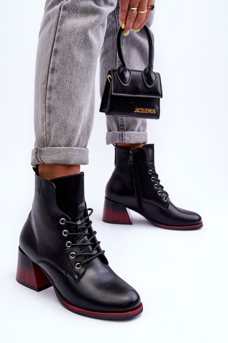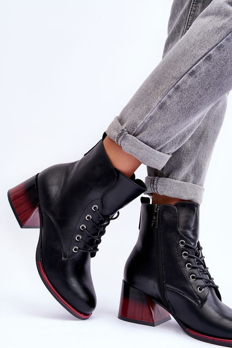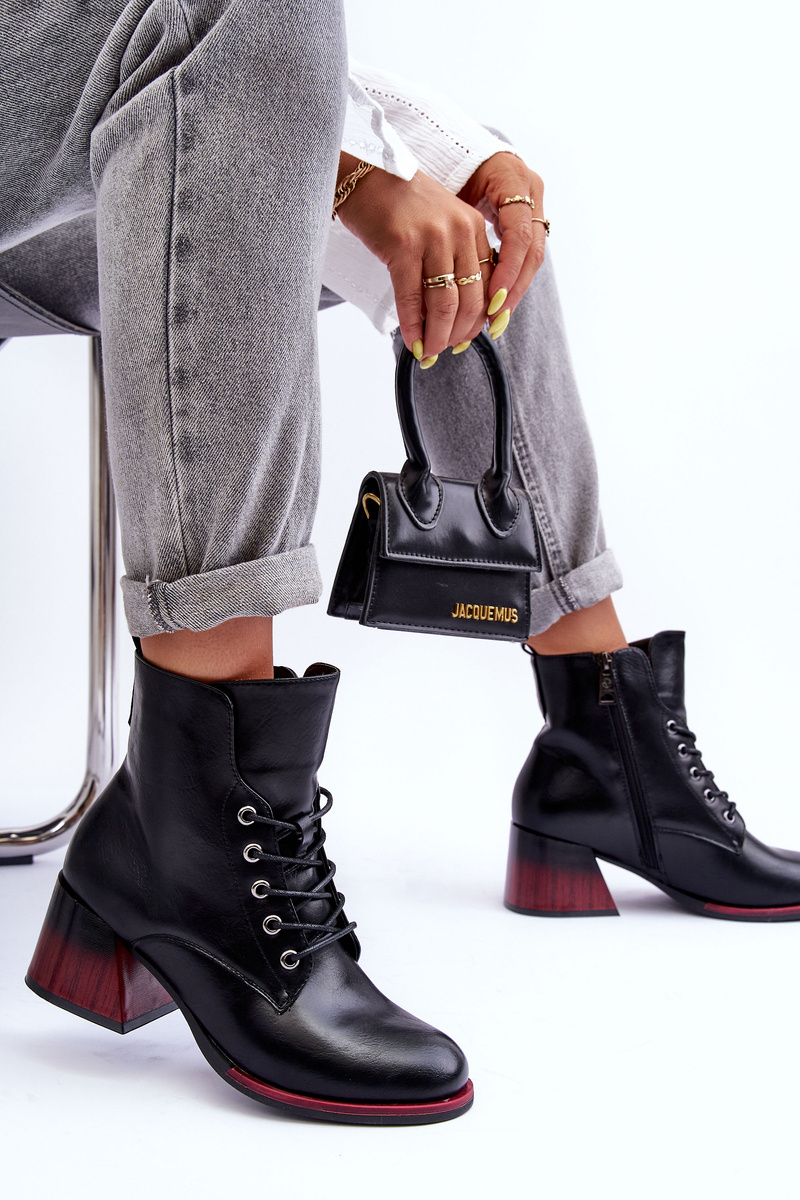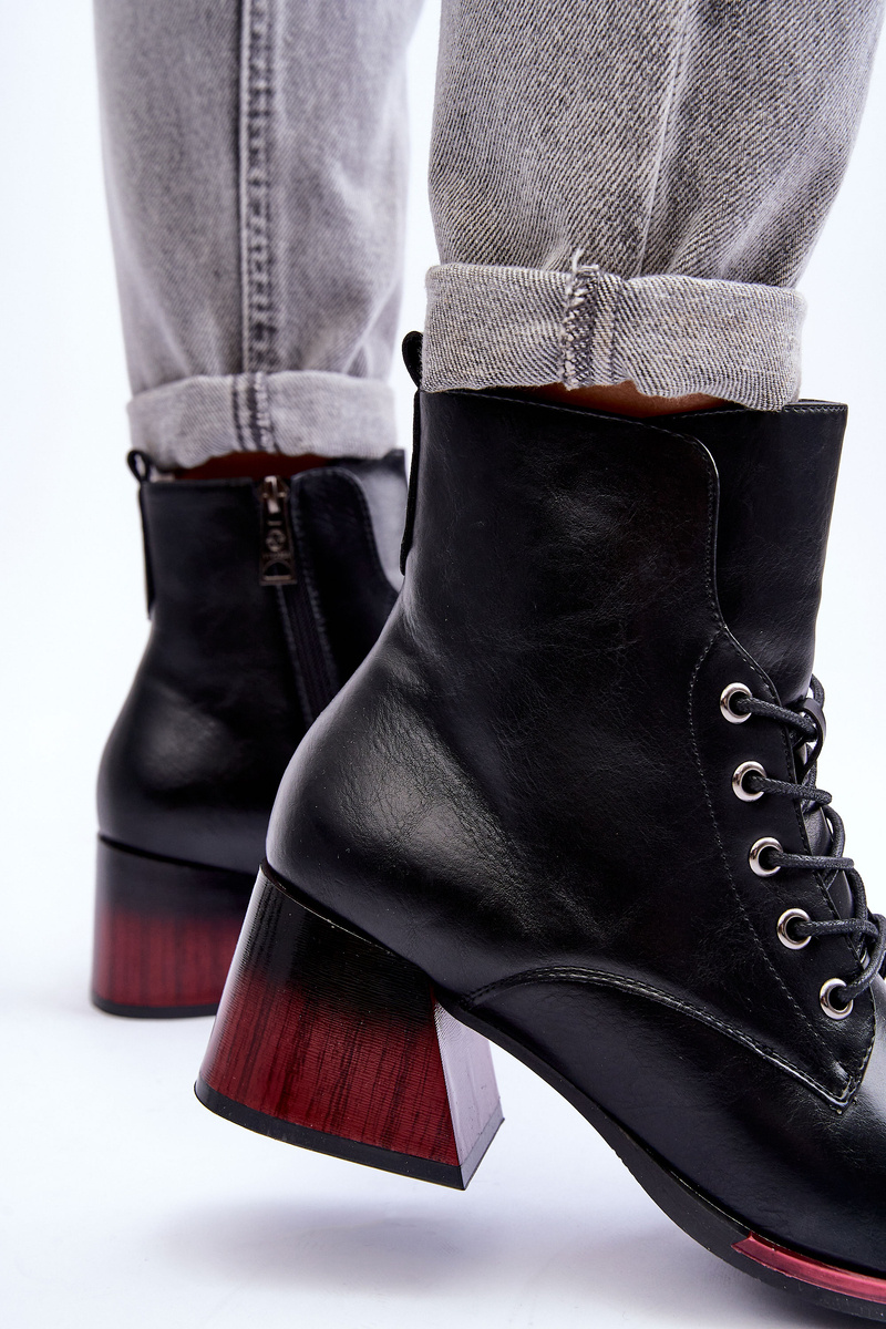 Štýlové dámske členkové topánky. Nastavené na platforme a pätách. Vyrobené z ekologickej kože. Majú upevnenie na zips a ďalšie šnurovanie. Mäkká vložka zabezpečí pohodlné použitie obuvi. Päta v tejto obuvi je stuhnutá. Boots bude skvelým doplnkom mnohých štýlov! Pri výbere veľkosti navrhnite tabuľku veľkosti.