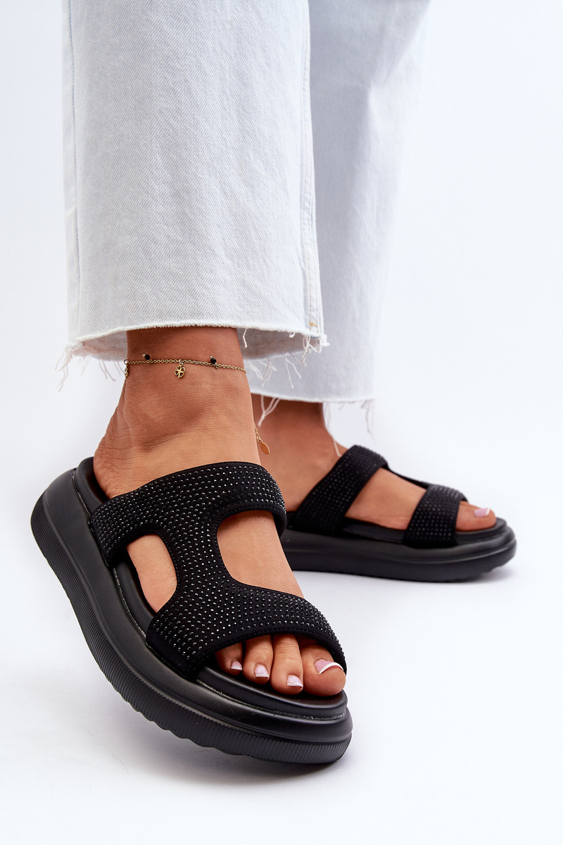 Čierne zdobené dámske papuče na platforme Jestella