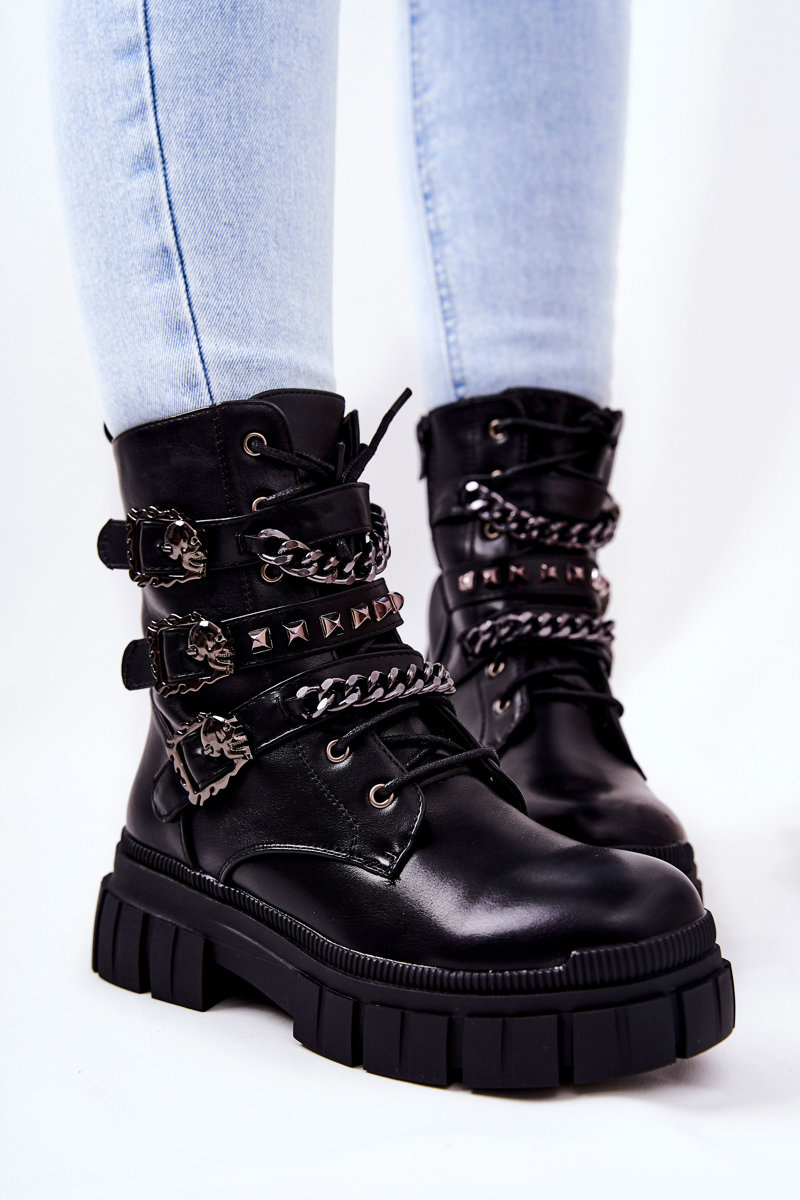 Unikátne topánky vyrobené z ekologickej kože. Majú puto a posúvač, ktorý uľahčuje inštaláciu obuvi. Na boku hornej časti sú pracky s motívom lebky, pre ktoré sú pripevnené popruhy s dekoratívnymi reťazcami a čapy. Skvelé topánky, ktoré poskytnú postavu vašej štylizácie! Pri výbere veľkosti navrhnite tabuľku veľkosti.