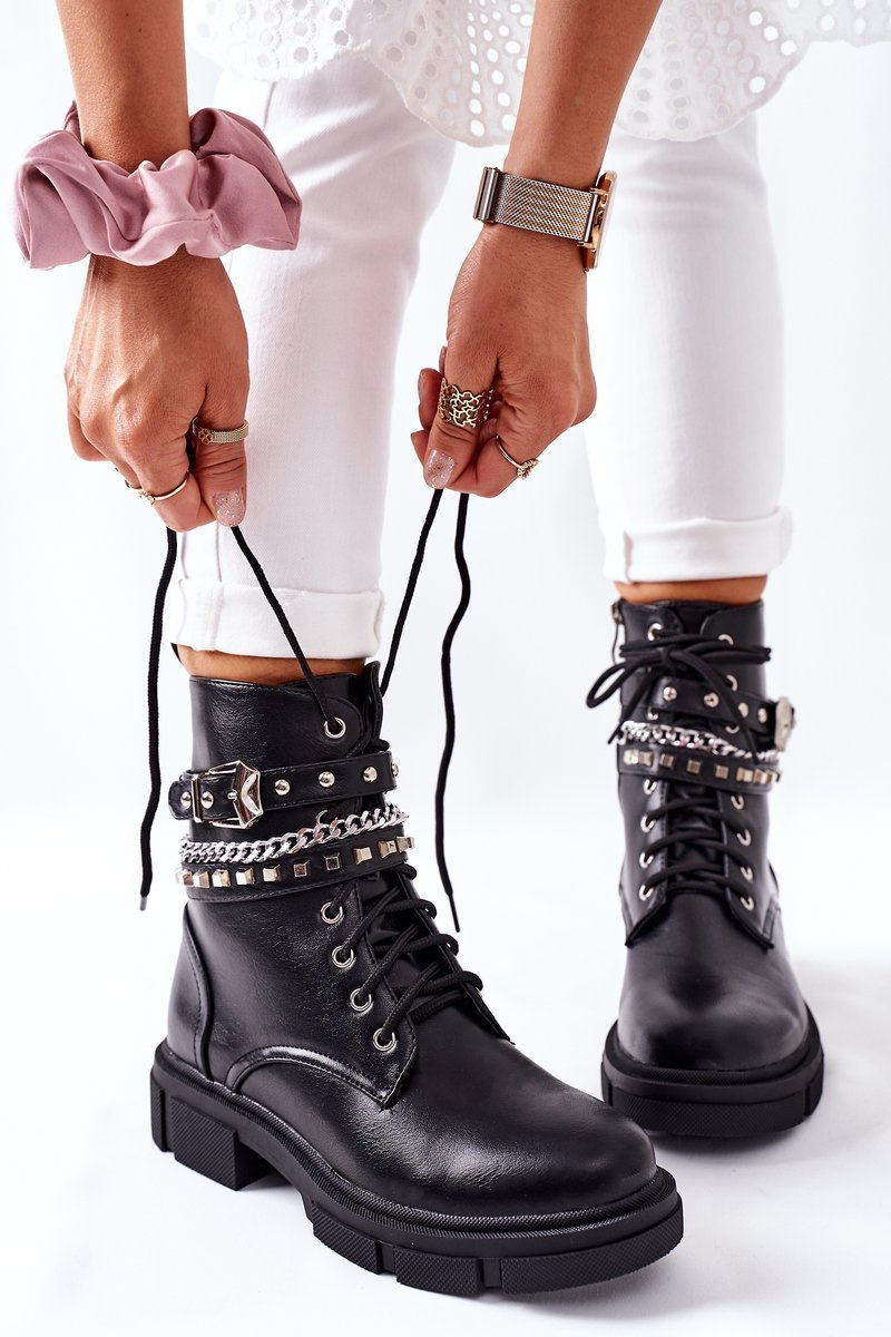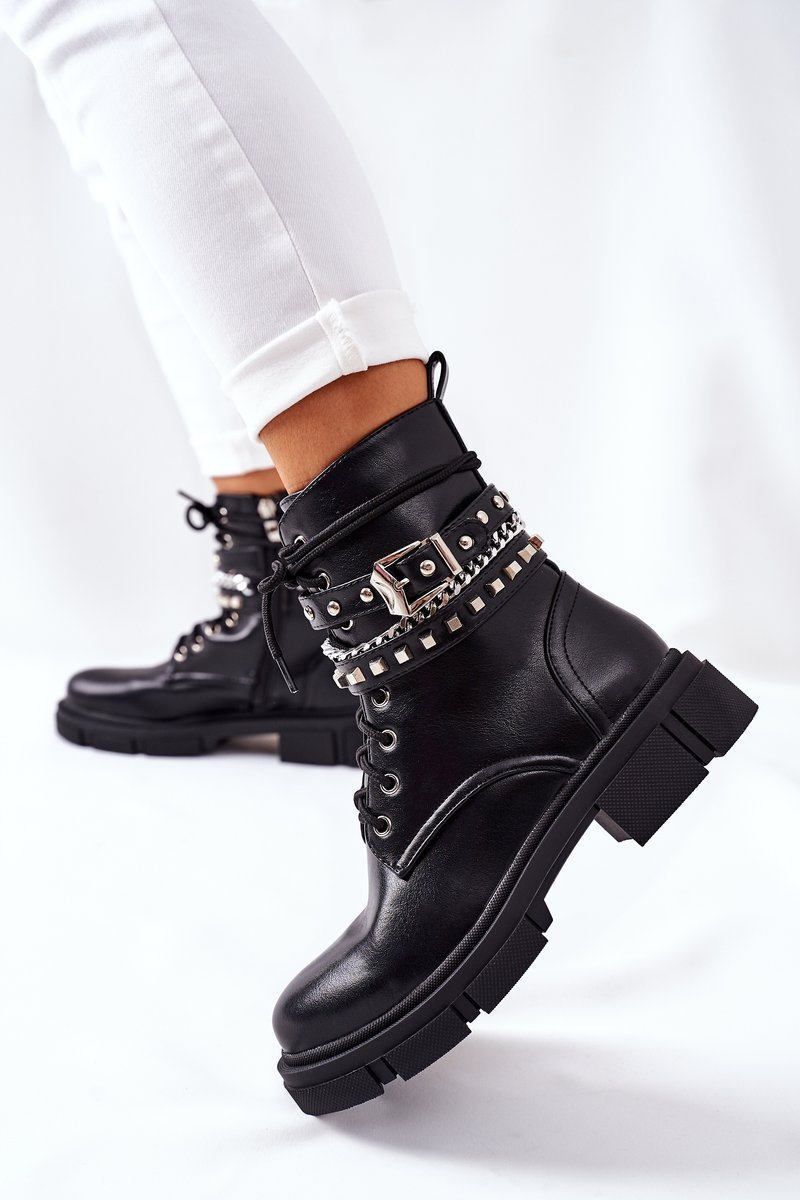 Nezvyčajné a štýlové topánky vyrobené z ekologickej kože. Pripevnený zipsom a prackou. Ďalšia dekoratívna reťaz na hornej časti. Pri výbere veľkosti navrhnite tabuľku veľkosti.