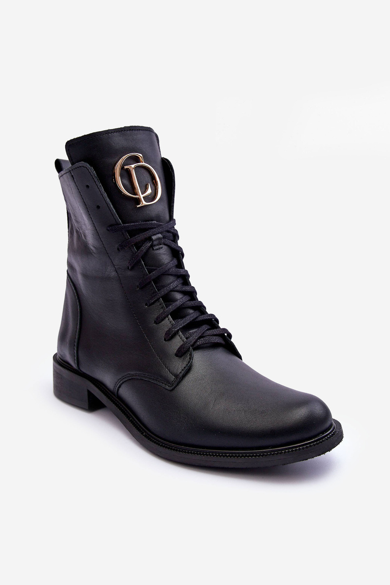 Skóra naturalna - labeltak Towar wprowadzony przed 13.12.2024Tak Čipka -up kožené topánky s dekoráciou čierna Nicole 2750