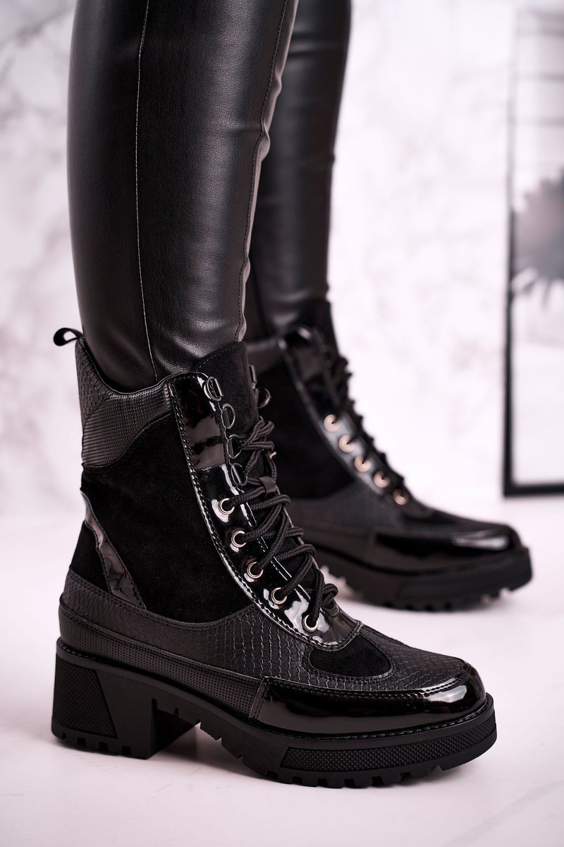 Čižmy izolované čierne výtlačky zvierací potlač Helenu