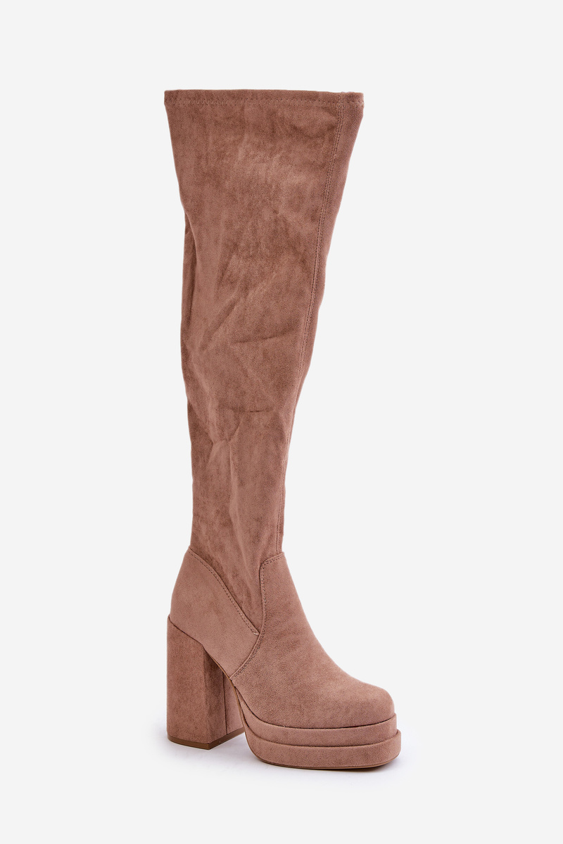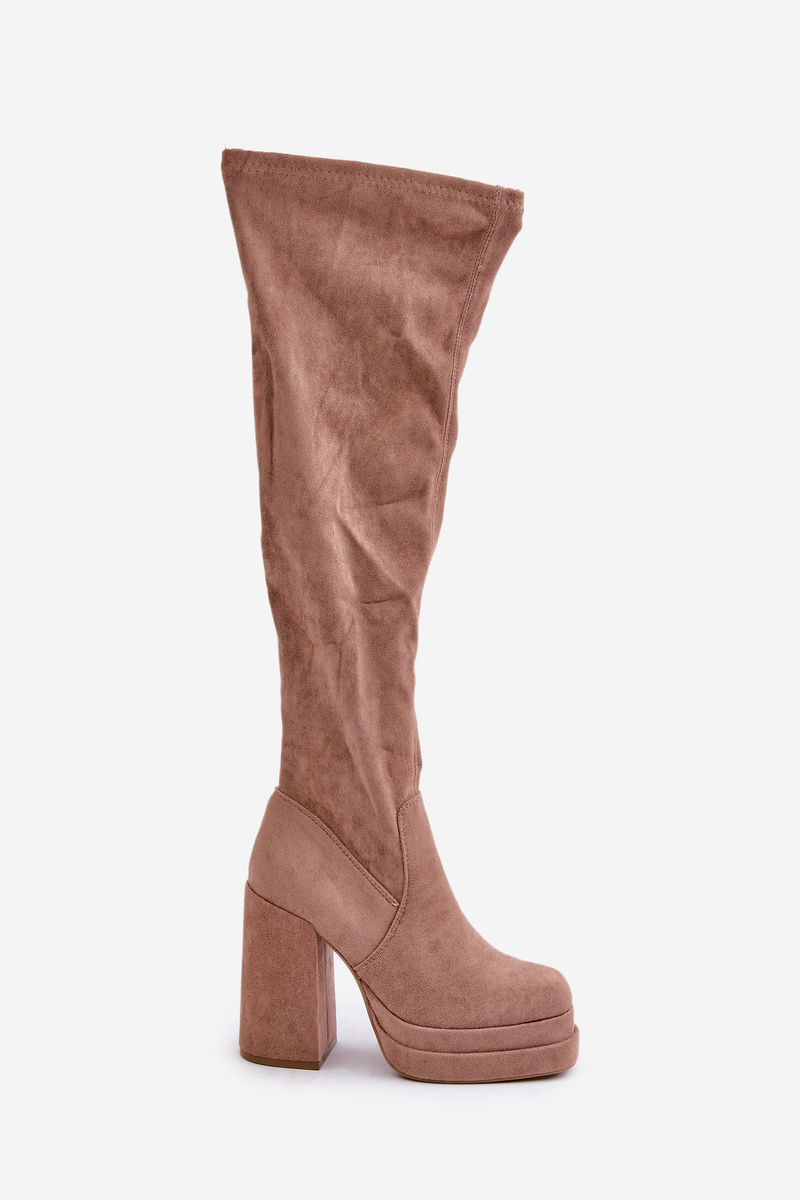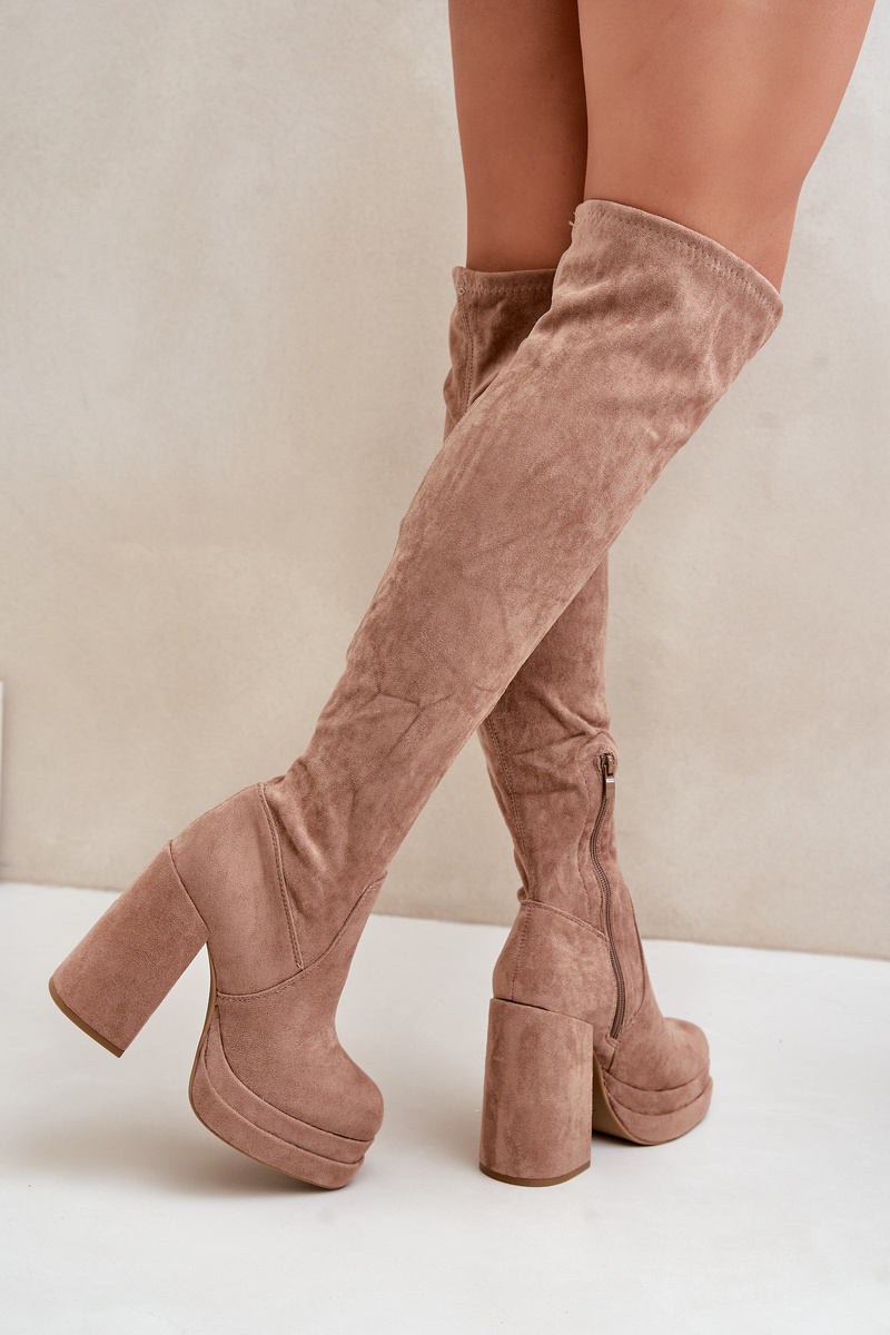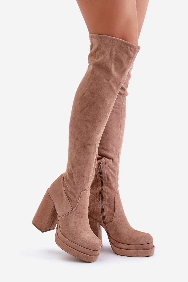 Čižmy Po Koleno S Opätkom A Platformou Béžové Nadelian