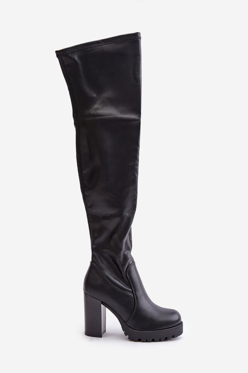 Čižmy S Návlekom Po Kolena Na Opätku Čierne Liatheia