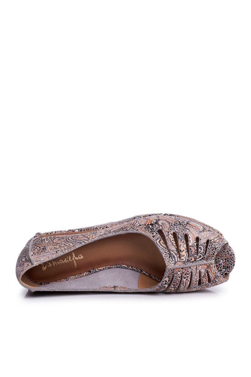Dámska balerinas Maciejka hnedá koža so vzormi 03497-21