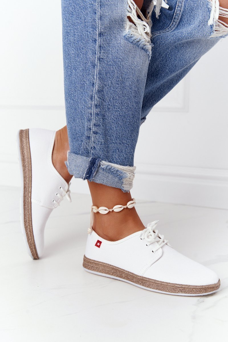 Dámska čipka -up espadrilles veľká hviezda ff276043 biela