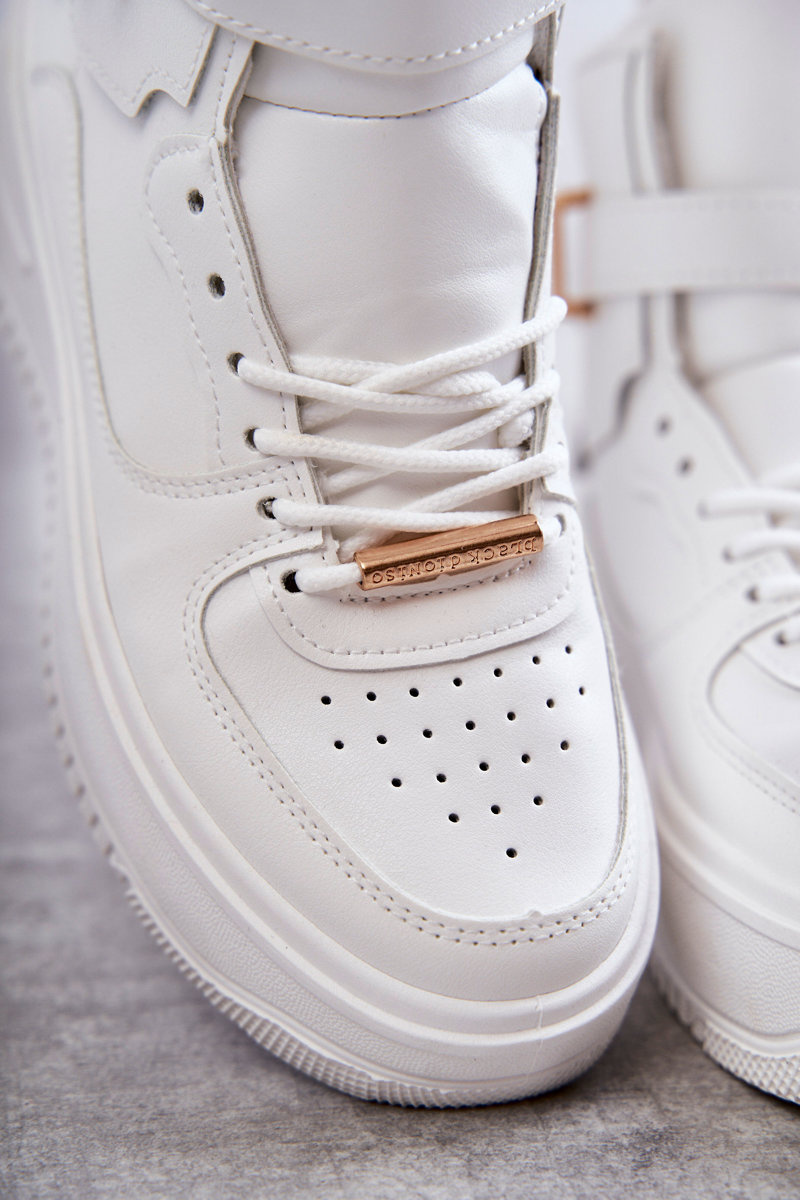 Dámske športové topánky s vysokým zvrškom boli vyrobené z ekologickej kože s jemnou perforáciou na prednej strane. Zaručené na masívnej plošine vyrobenej z gumového plastu. Model anti -slip. Športové topánky sú klasicky prepletené s ďalším popruhom na zvršku s sponou. Na chrbte majú dekoratívny visiaci zámok. V strede obuvi je izolovaný peknou obuvou prikrývkou. Pri výbere veľkosti postupujte podľa tabuľky veľkosti. p>