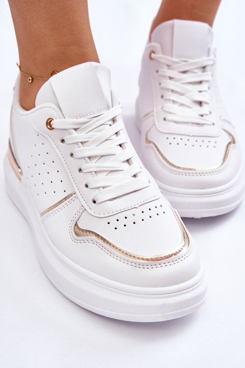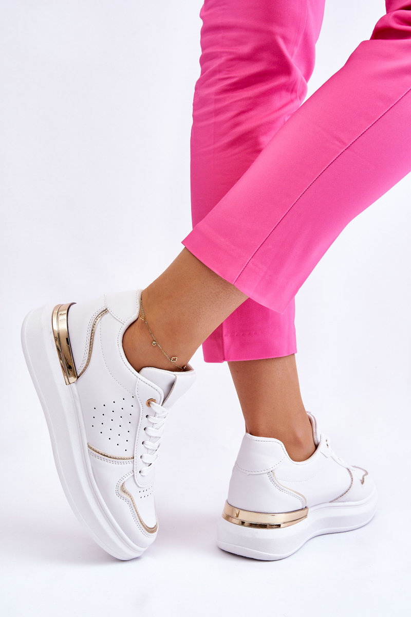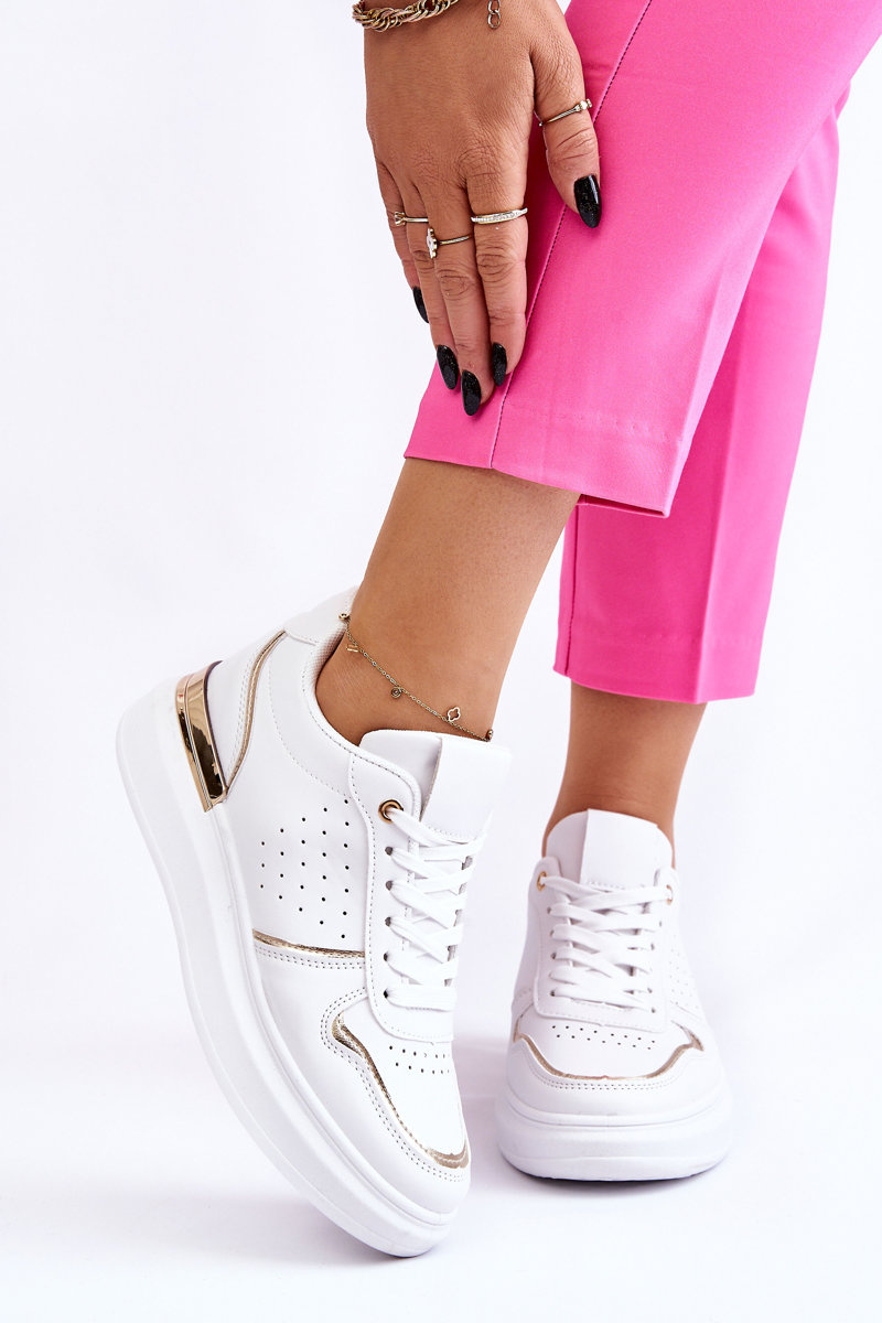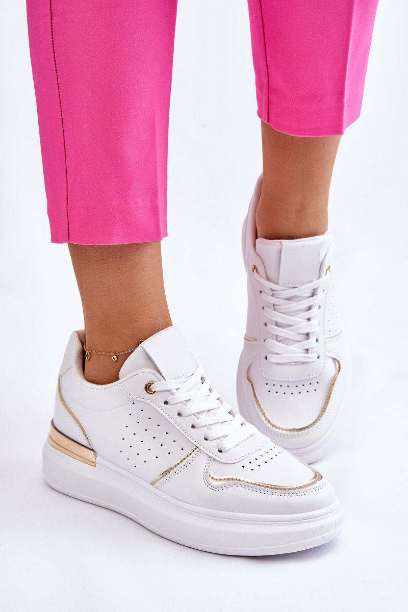 Pohodlné, športové dámske topánky boli vyrobené z ekologickej kože s jemnou perforáciou na boku a prednej časti zvršku. Zviazané na plochých šnúrkách. Metter na masívnej plastovej plošine. Vložka vyrobená z látky je počas používania pohodlná. Nos je zaoblený. Tento model sa zmestí na mnoho športových štylizovaných. Pri výbere veľkosti nasmerujte tabuľku veľkosti. 26/41-26,5 cm