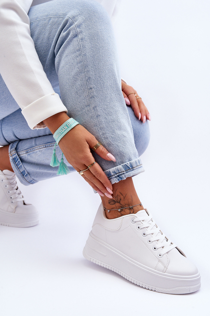 Dámske športové topánky boli vyrobené z ekologickej kože. Tento model je klasicky šnurovaný. Topánky sú umiestnené na masívnej plošine. Sú skvelé ako každodenná obuv, pre prácu alebo školu. Vložka je vyrobená z materiálu sa postará o vaše pohodlie. Tento model by mal byť vo vašom šatníku! Pri výbere veľkosti postupujte podľa tabuľky veľkosti. p>