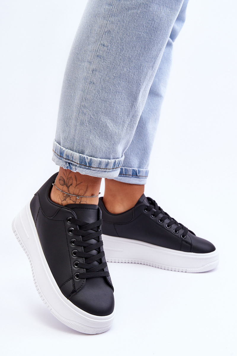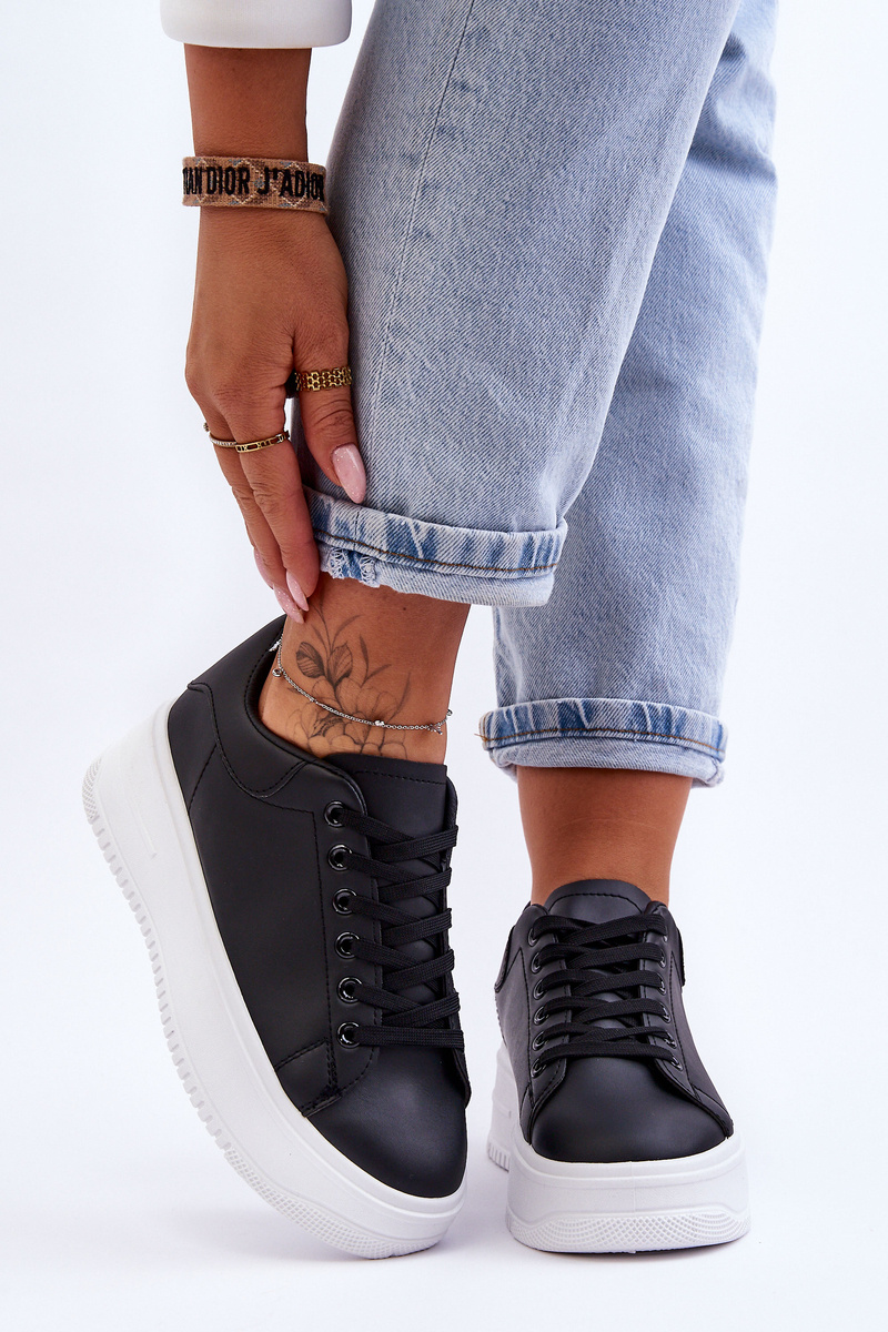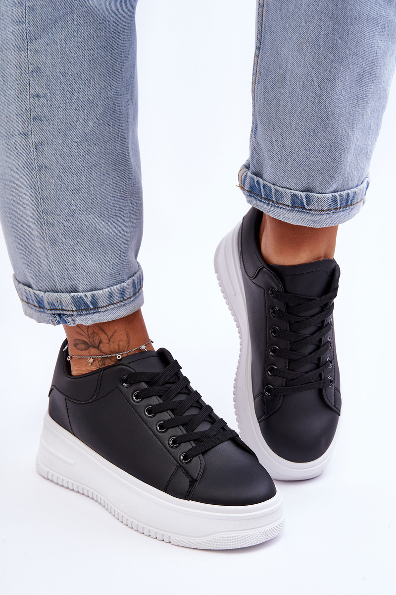 Dámske športové topánky boli vyrobené z ekologickej kože. Tento model je klasicky šnurovaný. Topánky sú umiestnené na masívnej plošine. Sú skvelé ako každodenná obuv, pre prácu alebo školu. Vložka je vyrobená z materiálu sa postará o vaše pohodlie. Tento model by mal byť vo vašom šatníku! Pri výbere veľkosti postupujte podľa tabuľky veľkosti. p>