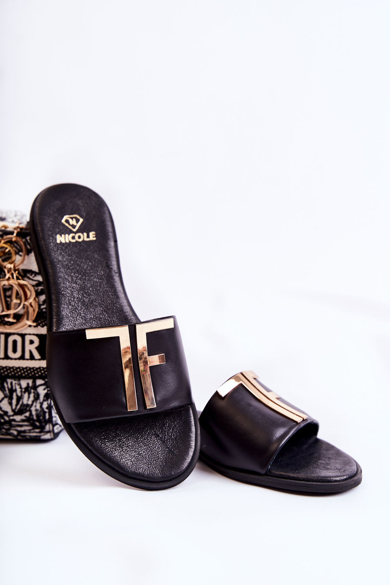 Dámska klasická kožená čierna adele flip -flops