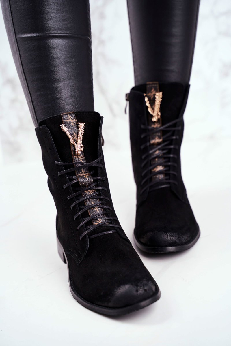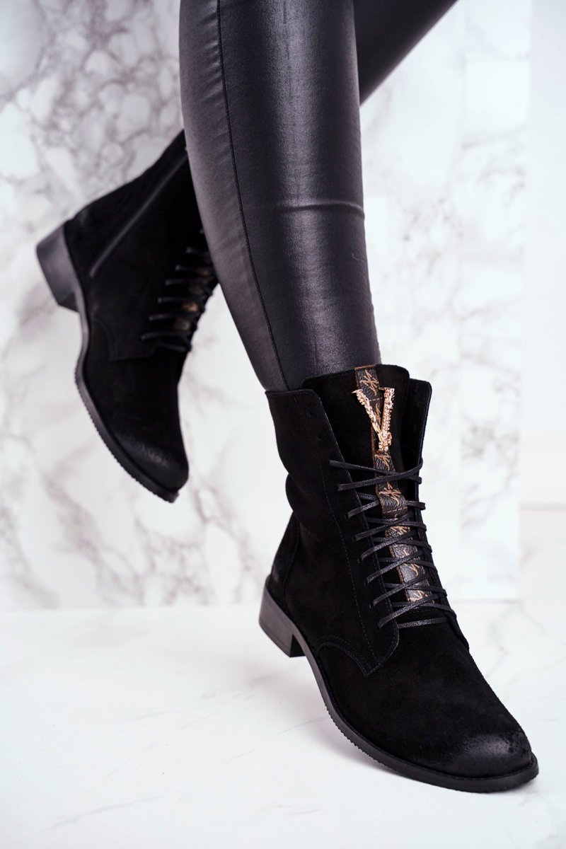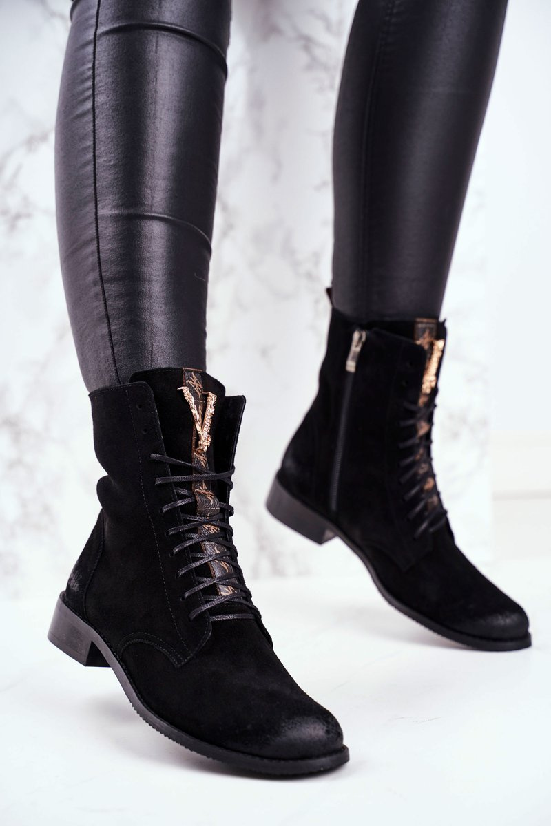 Boots nie sú len topánky pre chladné dni. Sú tiež skvelé pri vytváraní stylizovania jari. Topánky boli vyrobené z prírodnej kože Nubuck. Zdobenie vo forme zlatého písmena V vyzerá krásne a zdôrazňuje ich štýl. Uvedenie uľahčí posúvača šité na boku, zatiaľ čo šnúrky sa budú starať o lepšie fit. Roboty založené na jemnej plochej päte. Pri výbere veľkosti navrhnite tabuľku veľkosti.