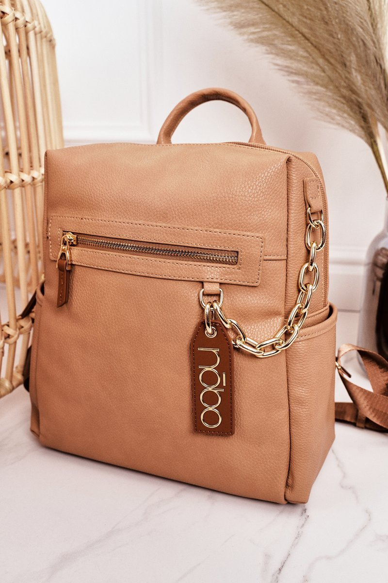 Nobo je značka, ktorá sa vyznačuje pôvodným štýlom a vysokou kvalitou výrobkov. Jedinečný batoh má jednu komoru, tri vnútorné vrecká pre telefón a malé predmety a tri vonkajšie vrecká. Batoh je vyrobený z mäkkej kože, má dekoratívnu reťaz a kľúčový prsteň.