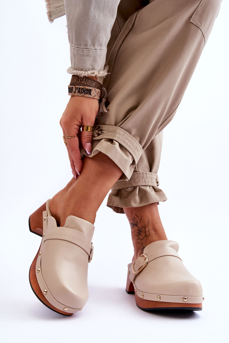 Klasický model dámskych drevín zabudovaných s vysokými podpätkami a platformou. Žabky boli zdobené na boku zvršku pásom s prackou. Okrem toho sú okolo jediného dekoratívnych cvočkov. Horná a vložka boli vyrobené z ekologickej kože. Tento model je vynikajúci pre každodenný život. Vďaka mäkkej vložke sú mimoriadne pohodlné používanie. Pri výbere veľkosti navrhnite tabuľku veľkosti.