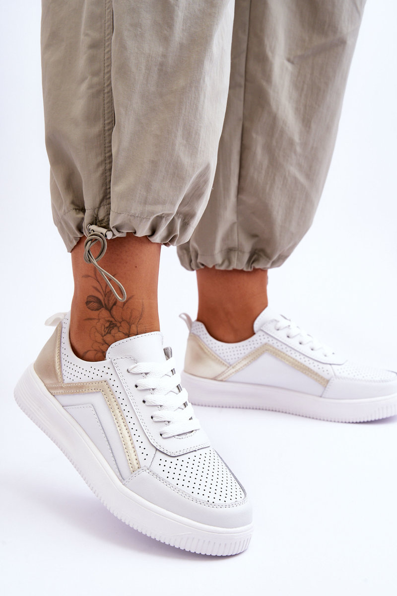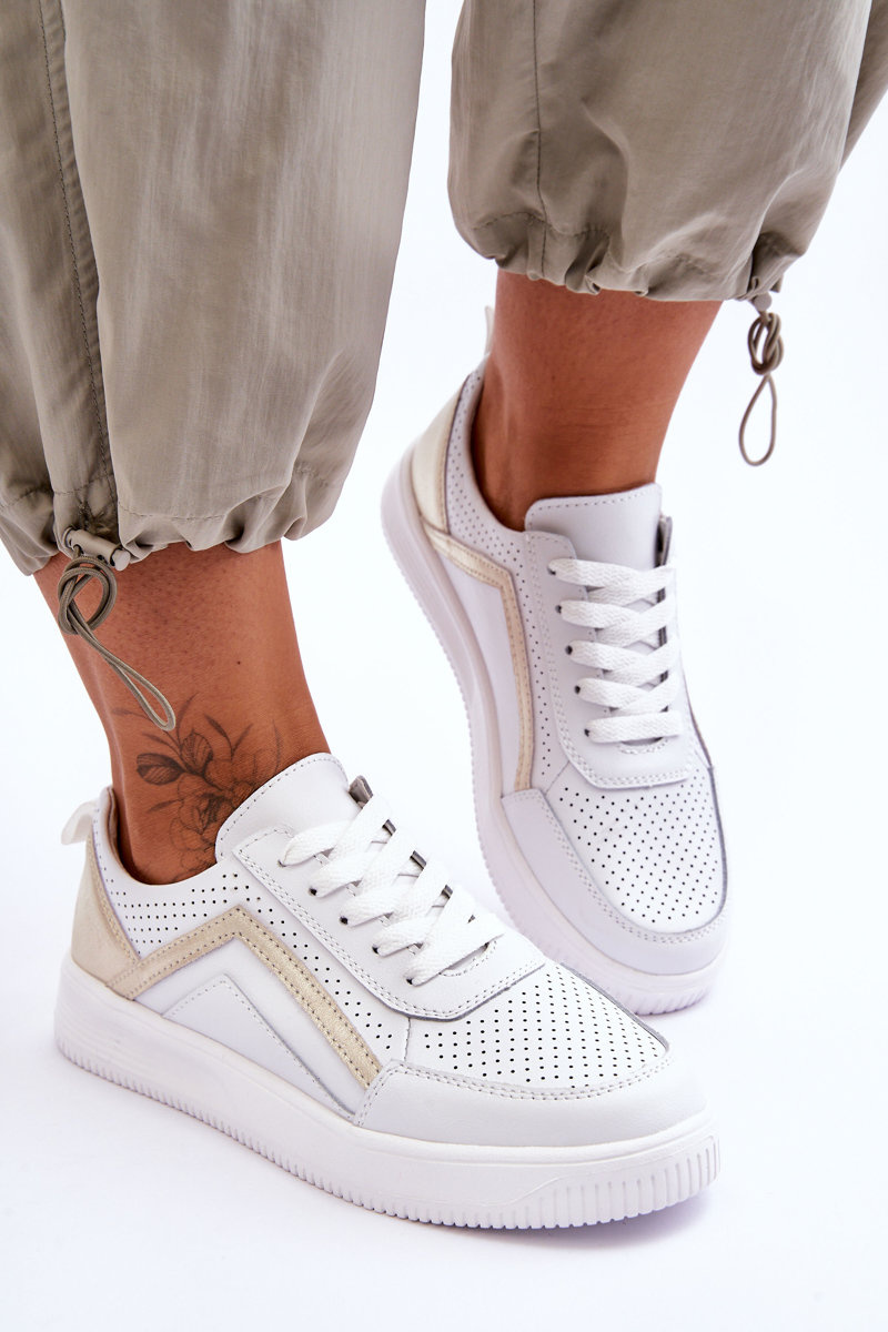 Dámska kožená športová topánka s perforáciou biela a zlatá karvalo
