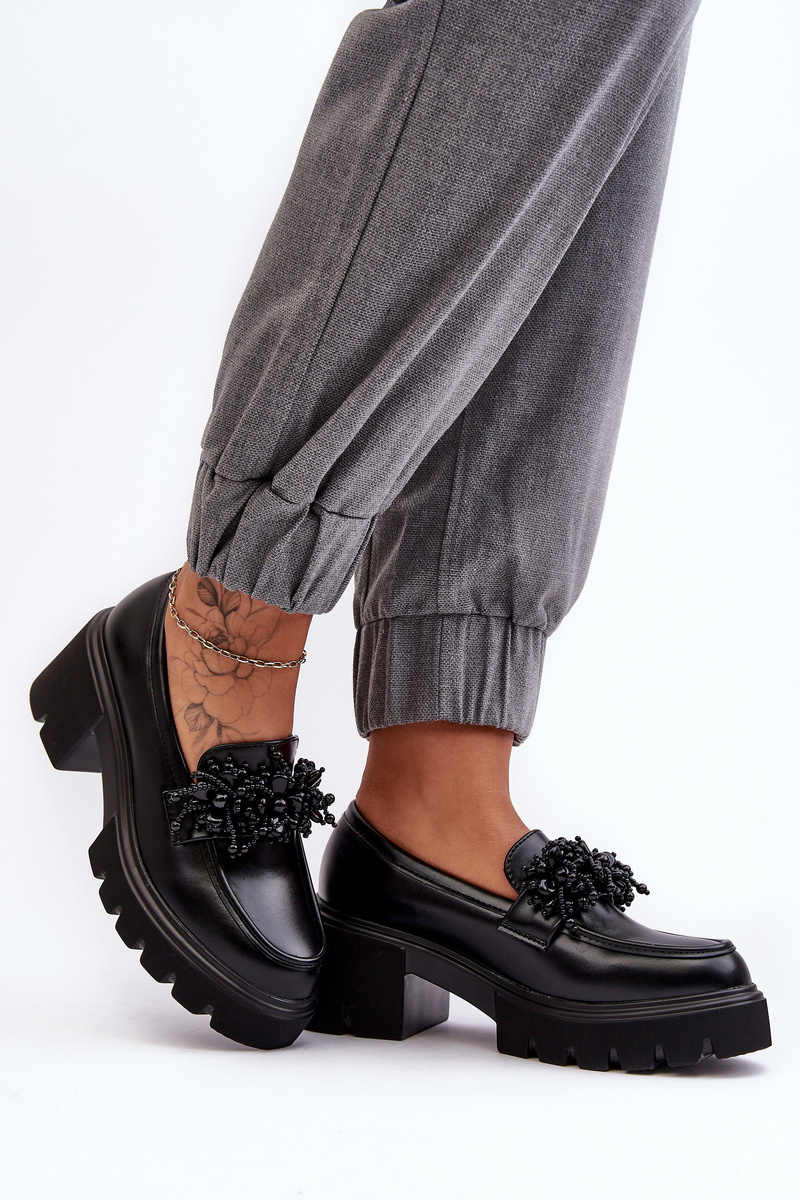 Štýlové dámske topánky s dekoráciou na opasku. Vstavaná hrubá podrážka a masívne, nízke podpätky. Zaoblené prsty na nohách. Stuhnutá päta. Eco Leather Insert poskytne pohodlie počas používania. Tento model bude ideálny pre mnoho jesenných štylistov! Pri výbere veľkosti navrhnite tabuľku veľkosti. /p>