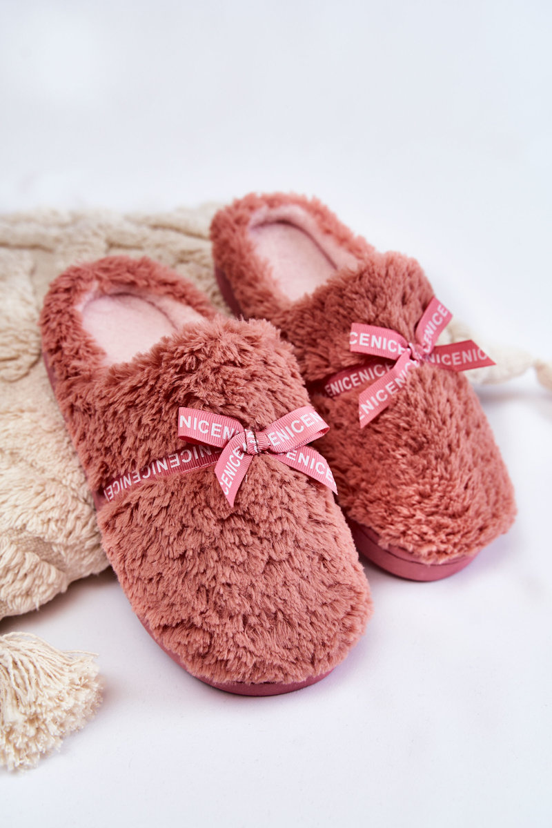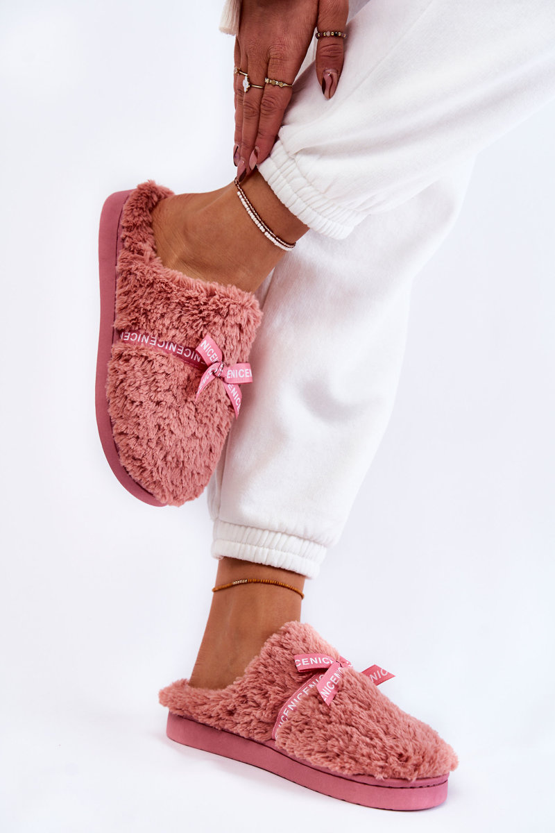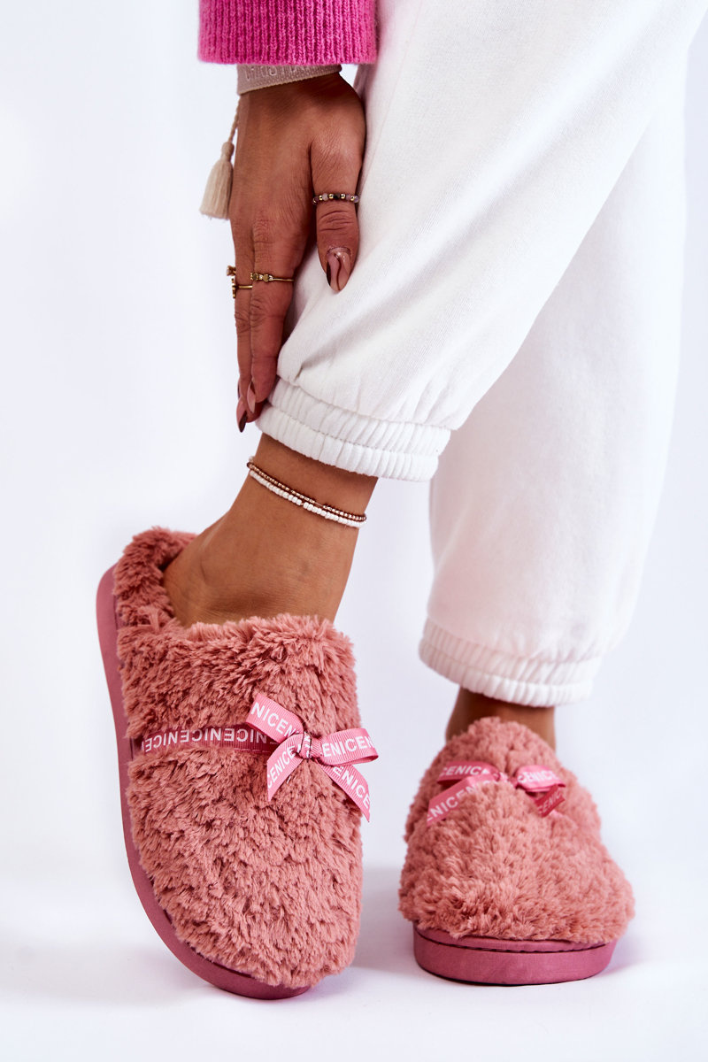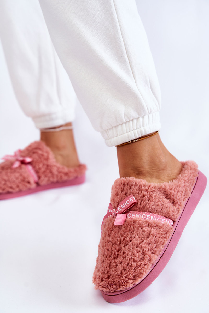 Dámska kožušina papaci s ružovými lukmi Ryana