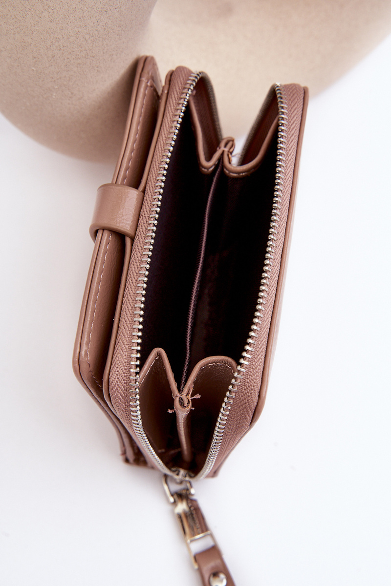 Elegantná, malá dámska peňaženka vyrobená z ekologickej kože. Pripevnený magnetom. Tento model má vrecko na externé mince, uzavreté posúvačom, ktorý uľahčuje prístup k malým peniazom. Tento model má tiež priestor pre bankovky a karty.