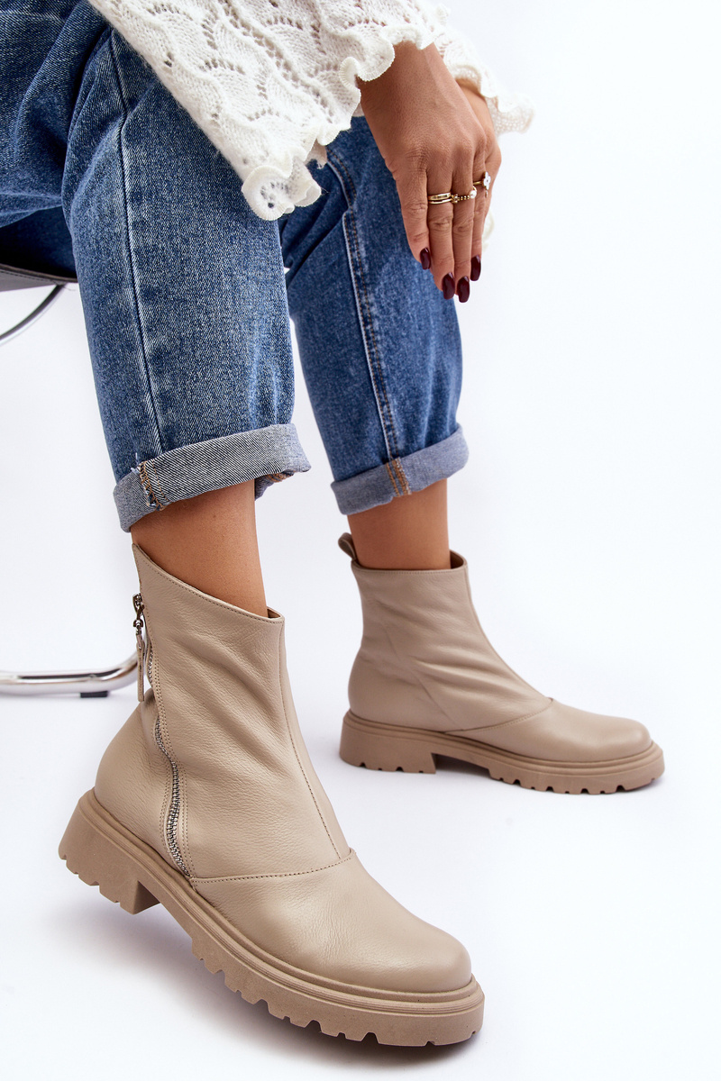 Dámska plochá kožená kožená topánky Laura Messi 2620/199 Svetelná béža