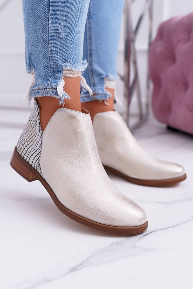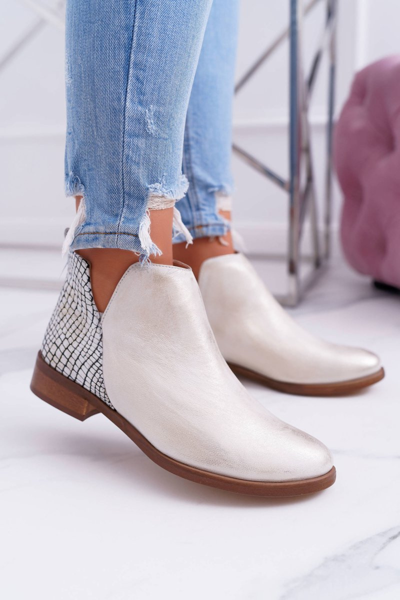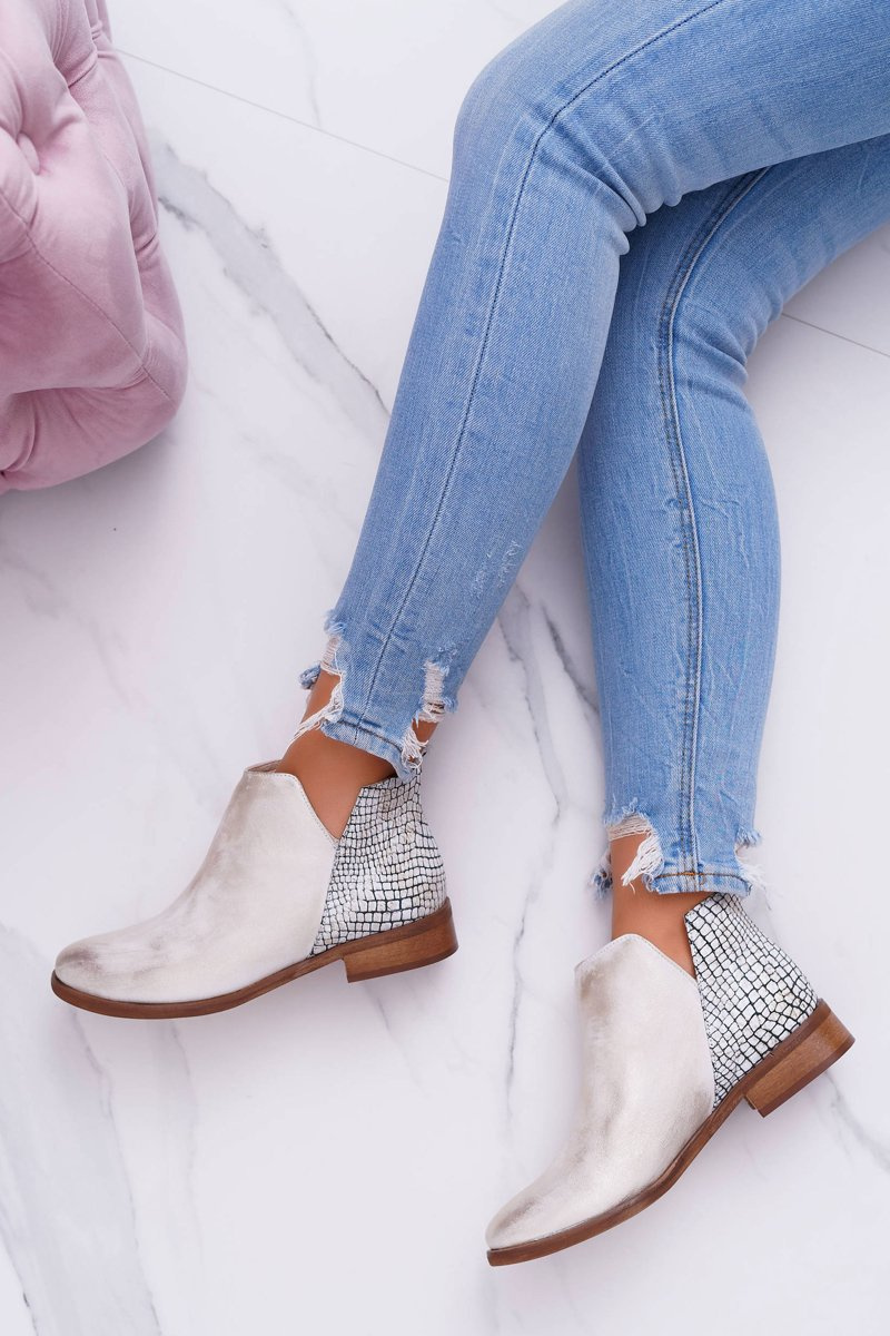 Boots nie sú len topánky pre chladné dni. Sú tiež skvelé pri vytváraní stylizovania jari. Topánky majú jemné výrezy vo výške členkov. Plochá päta a vzorkovacia pokožka krokodíla, ktorá sa v tejto sezóne stala veľmi módnou. Topánky sú úplne vyrobené z prírodnej kože. Poľský produkt, ktorý nám zaručuje pohodlie a vysokú kvalitu. Ideálne pre vzdušné šaty a džínsové nohavice. Pri výbere veľkosti navrhnite tabuľku veľkosti.