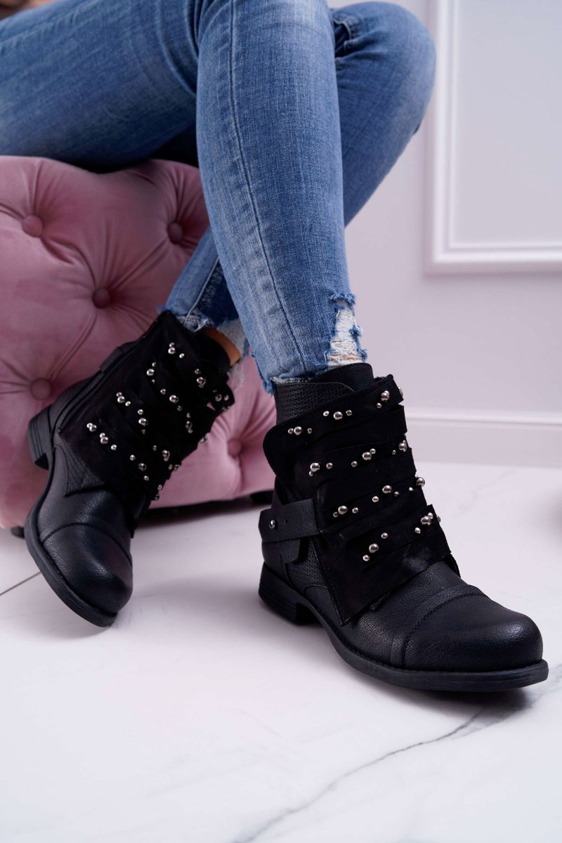 Dámska plochá päta s čiernymi kamienkami Valko