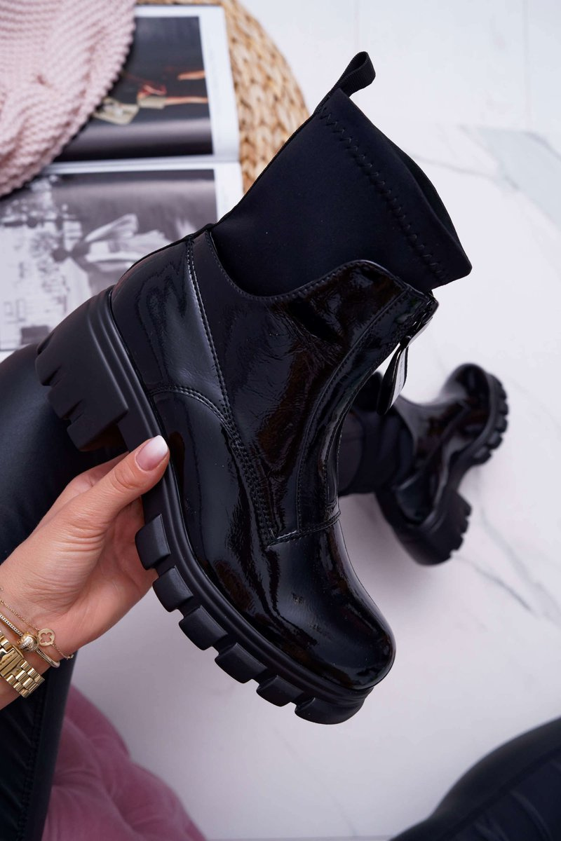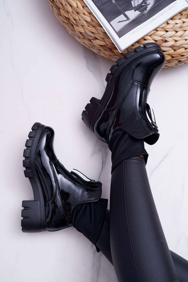 Emelia topánky vyrobené z čiernej lakovanej eko-kože. Moderný vzor pôvabu. Vkĺzané topánky sa skončili elastickou „ponožkou“. Zdobenie vo forme posúvača s nápisom zdôrazňuje ich jedinečnosť. Pri výbere veľkosti navrhnite tabuľku veľkosti, ktorá je k dispozícii po vznášaní alebo kliknutí na danú veľkosť.