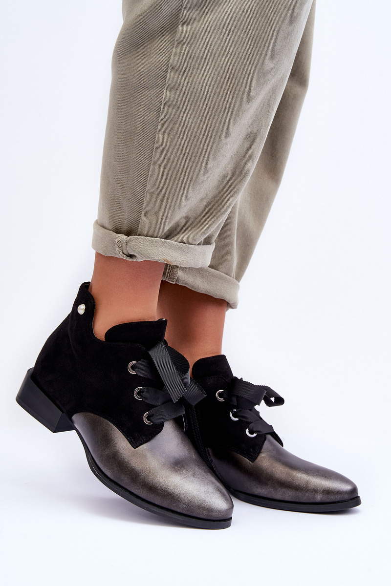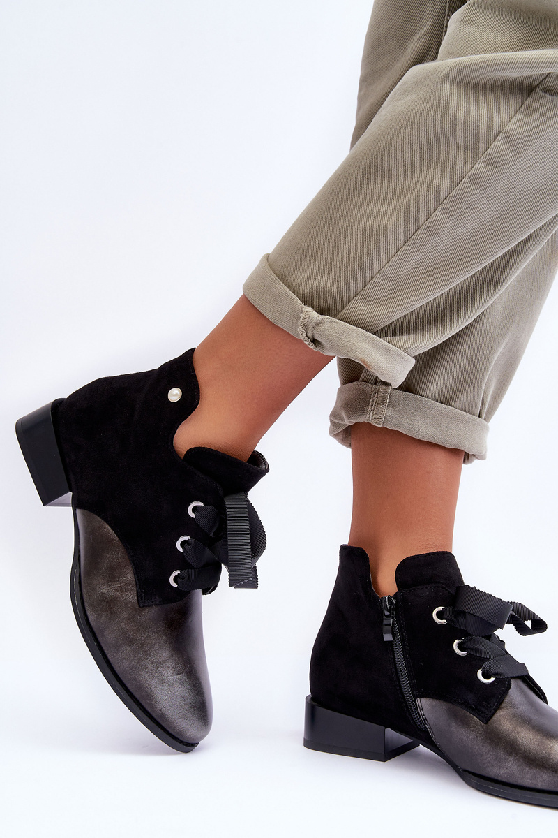 Módne dámske topánky s horným členkom boli vyrobené z ekologickej kože. Tento moden je pripevnený posúvačom na boku a dodatočne priviazaný. Umiestnené na plochej stabilnej päte. Vo vnútri izolovanej s obuvou prikrývkou. Päta je stuhnutá. Pri výbere veľkosti navrhnite tabuľku veľkosti. p>